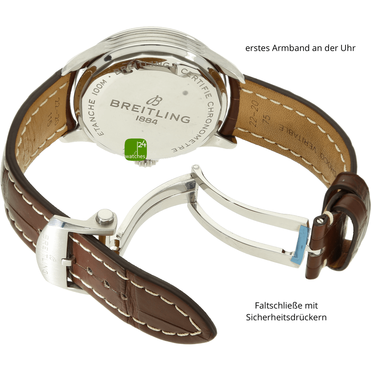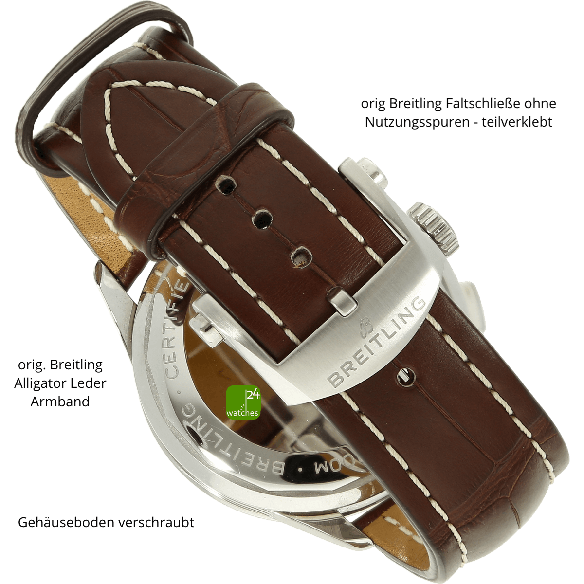 orig Breitling alligator leather strap with white stitching in very good condition | orig Breitling folding clasp with 2 safety push-buttons in stainless steel - the
