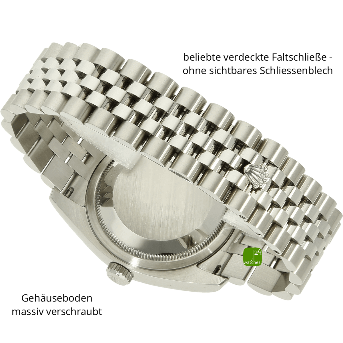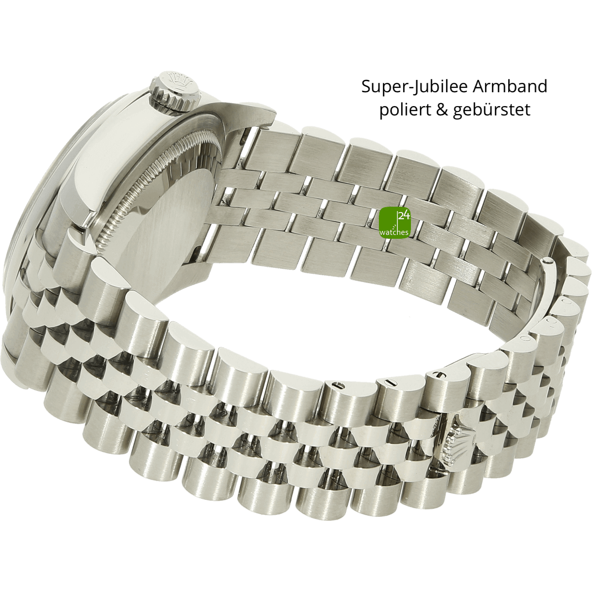 Rolex Jubilee bracelet in polished and brushed stainless steel | invisible Rolex Suberjubilee folding clasp (less bulky than the box folding clasp = more comfortable to wear | total length of watch strap and watch case approx. 19.5 cm | The bracelet has NO loss of tension!