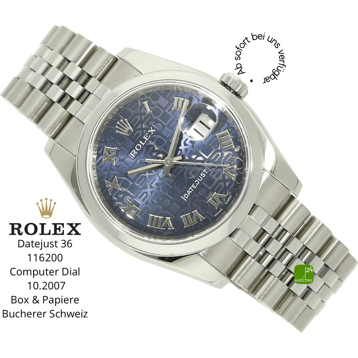 Rolex Datejust Stahl Jubilee 2007 Computer Dial B & P