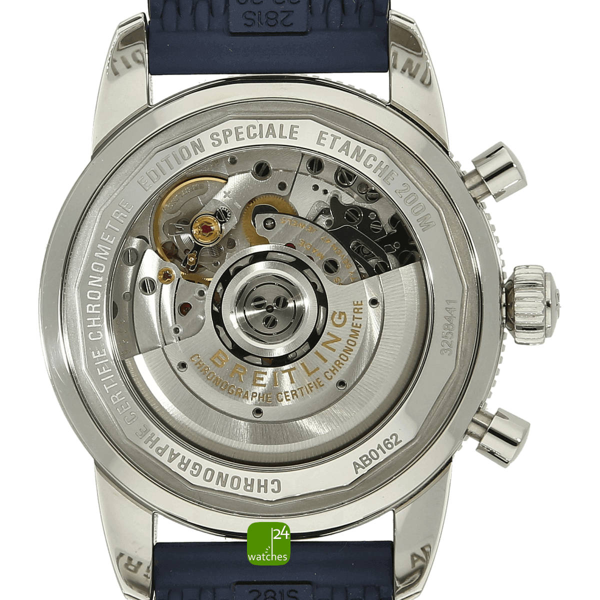 Automatique | orig Breitling Manufaktur Cal B 01 | 346 composants| | 28 800 A/h | Certifié chronomètre | 47 pierres | Réserve de marche 70 heures | Affichage des heures, minutes, secondes décentralisées, date numérique entre quatre et cinq heures. Affichage du chronographe à 3-6 heures. Seconde permanente à 9 heures.