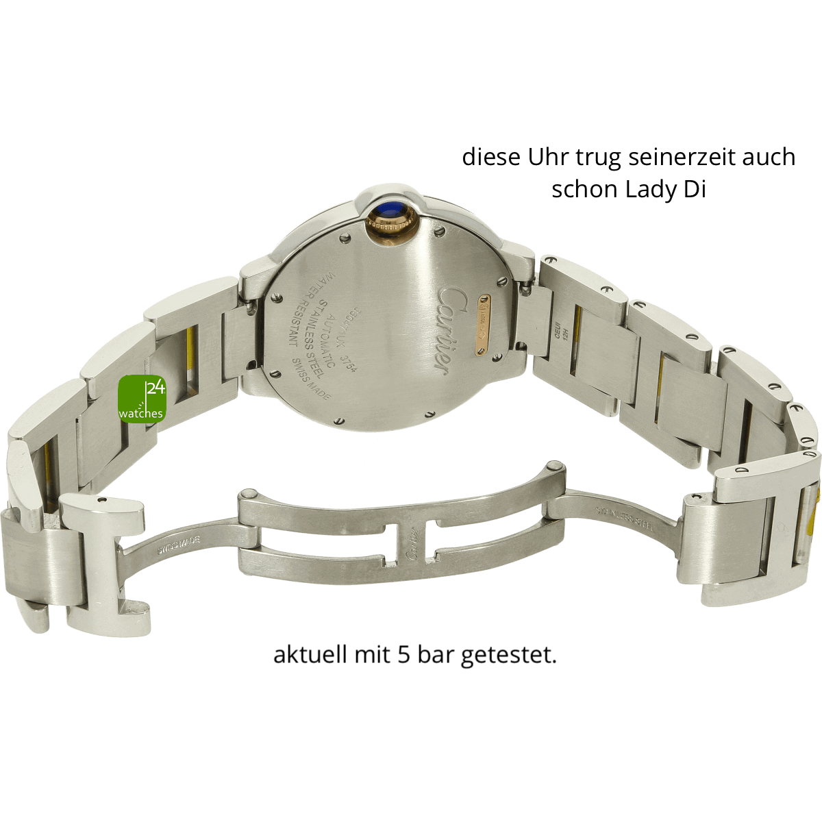 Hersteller von Luxusuhren beziffern bei Erstauslieferung der Uhr, bis zu welch einer Tiefe - Angabe in bar -die Uhr wasserdicht ist. Diese Angabe finden Sie je nach Markenhersteller auf dem Gehäuseboden oder Zifferblatt oder in der Produktbeschreibung.