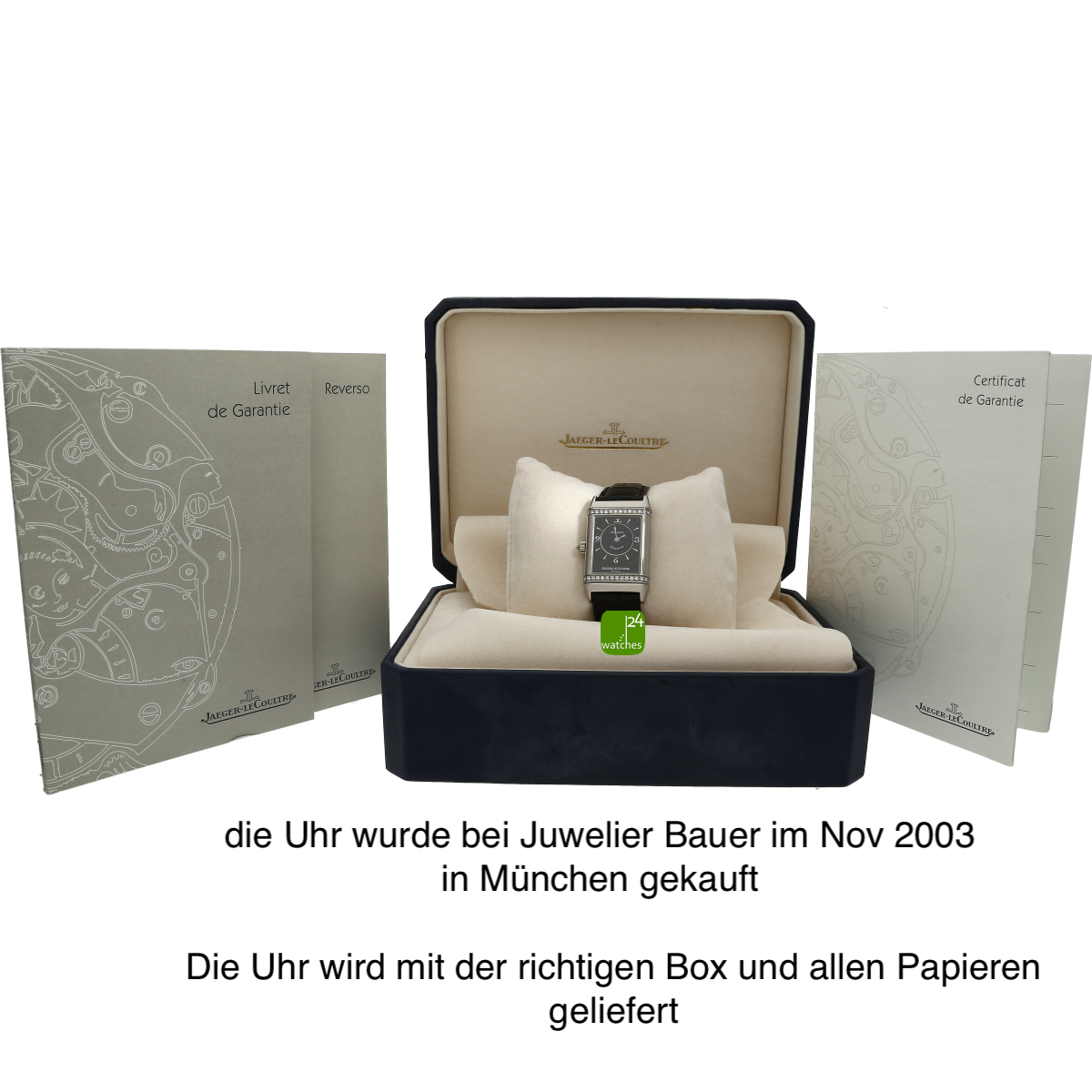 Hat die Uhr keine Original-Papiere, bescheinigen wir die Echtheit in Form eines Zertifikates. Die Referenz-/ Serien-Nummer wird von uns dokumentiert in der personalisierten watches24-Rechnung.