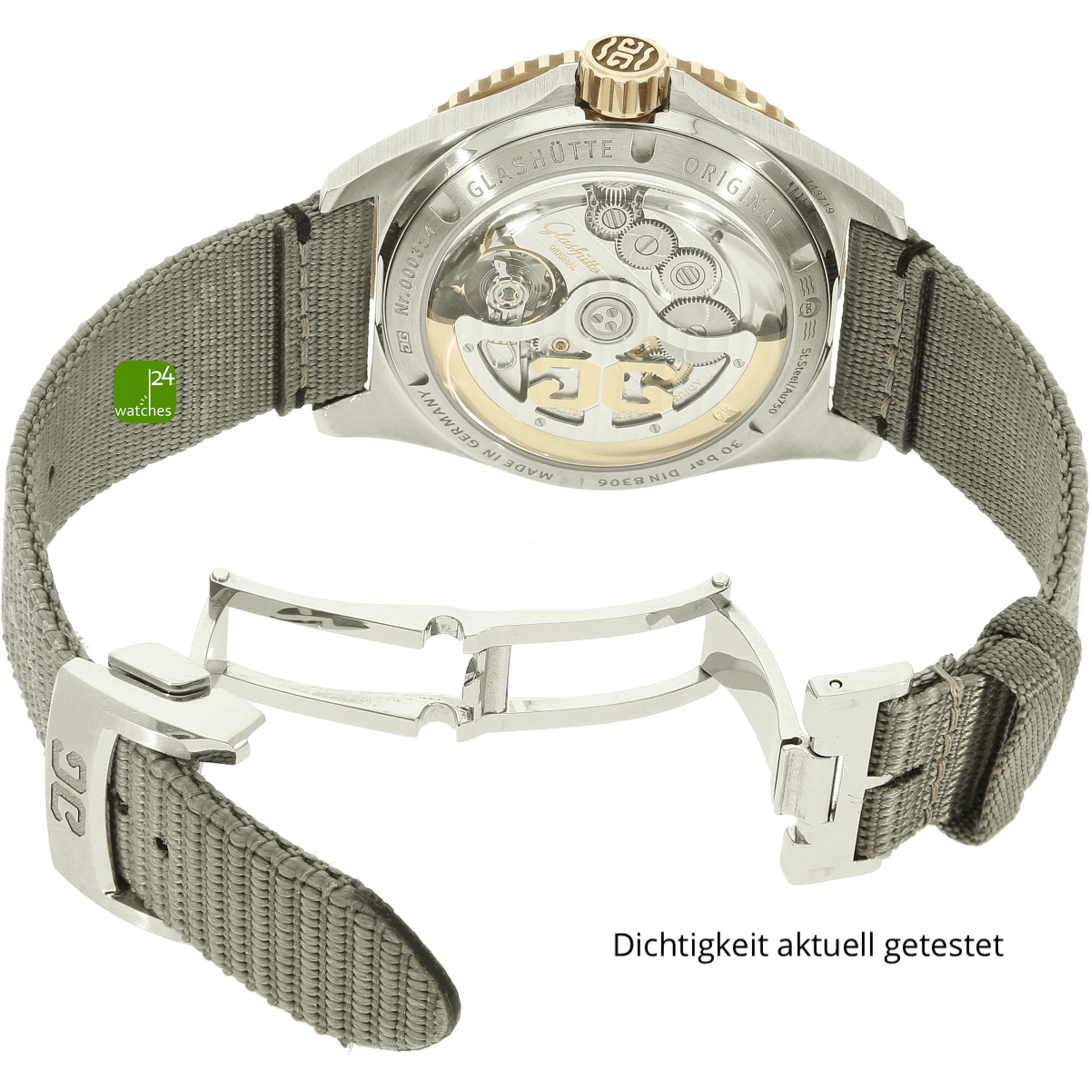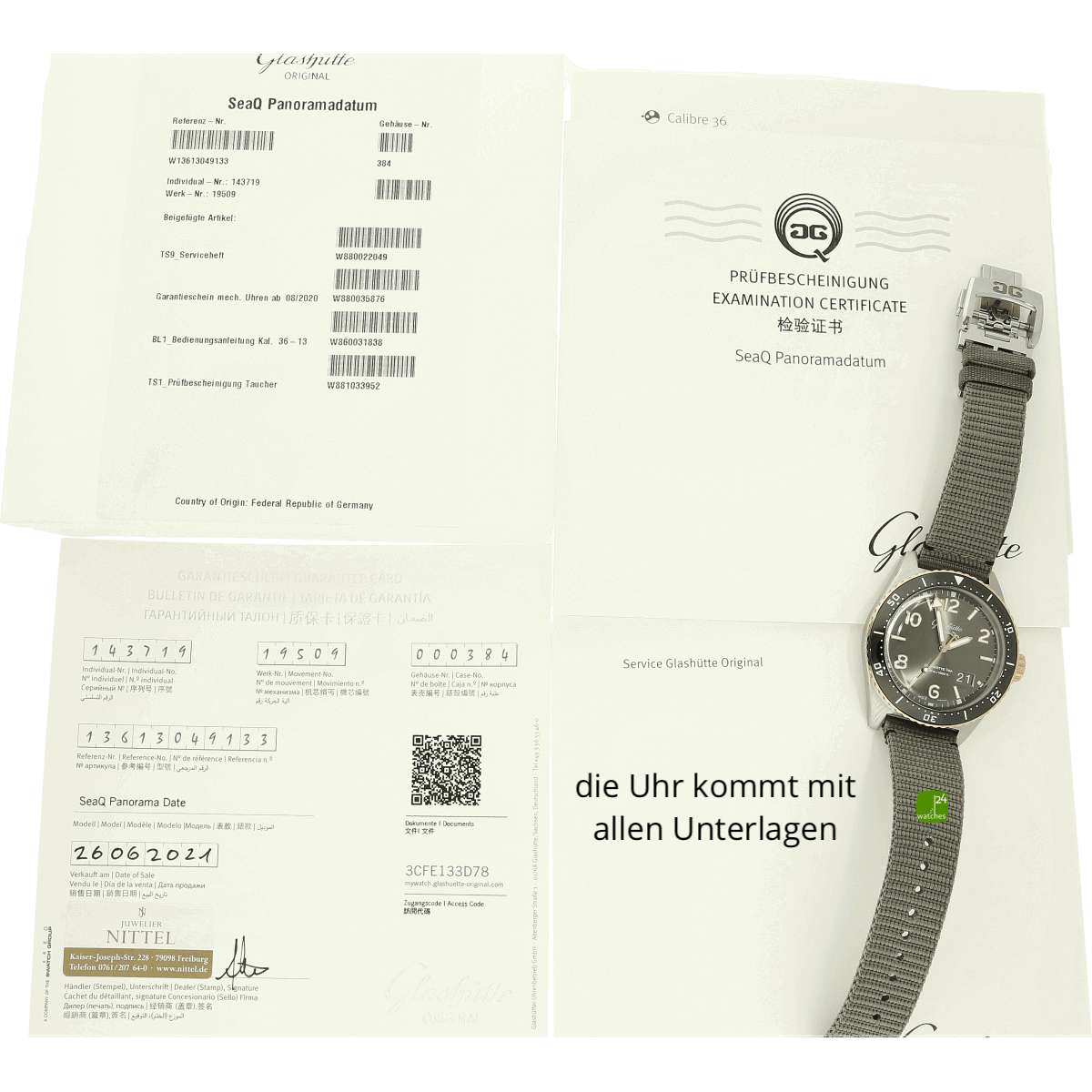 Hat die Uhr keine Original-Papiere, bescheinigen wir die Echtheit in Form eines Zertifikates. Die Referenz-/ Serien-Nummer wird von uns dokumentiert in der personalisierten watches24-Rechnung.