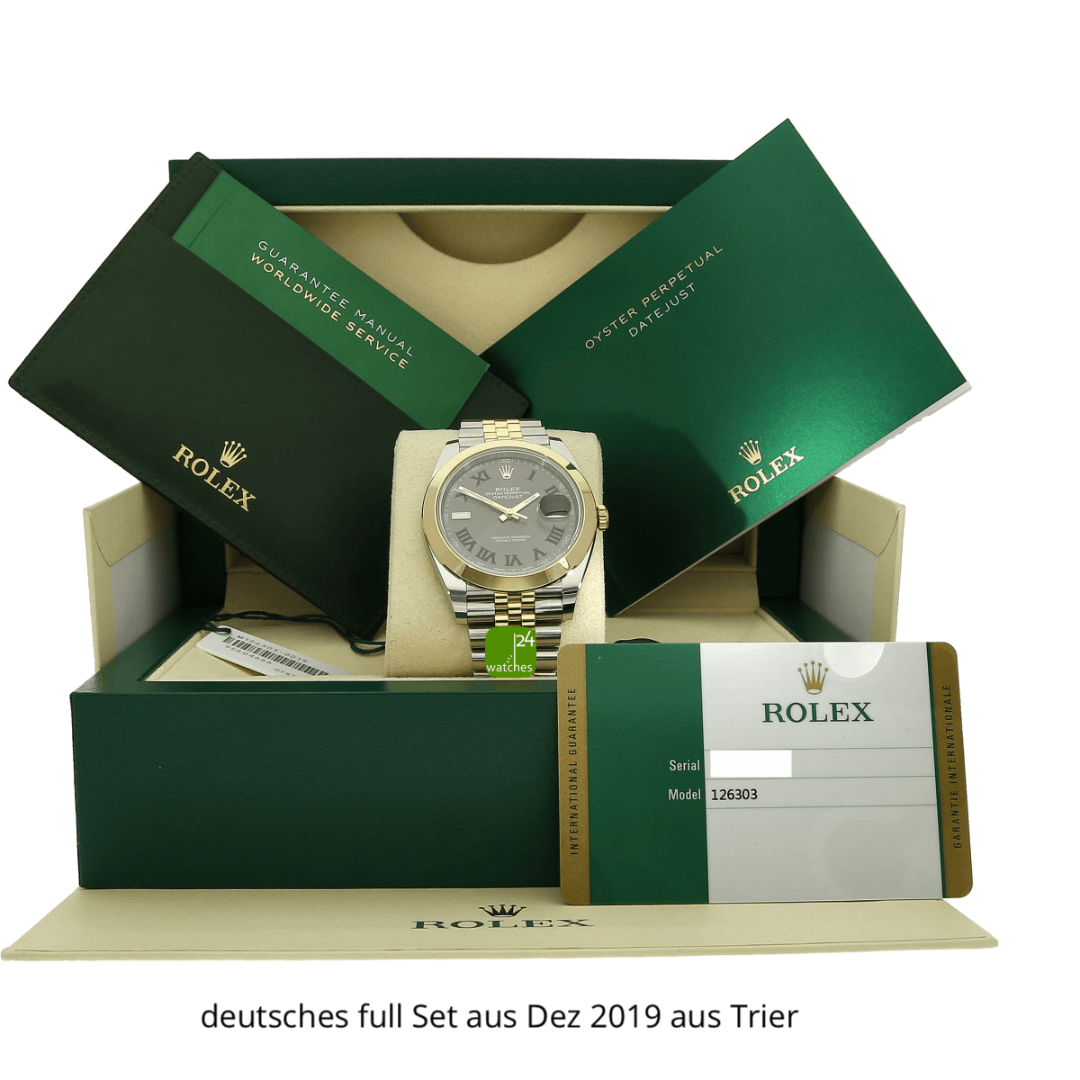 Hat die Uhr keine Original-Papiere, bescheinigen wir die Echtheit in Form eines Zertifikates. Die Referenz-/ Serien-Nummer wird von uns dokumentiert in der personalisierten watches24-Rechnung.
