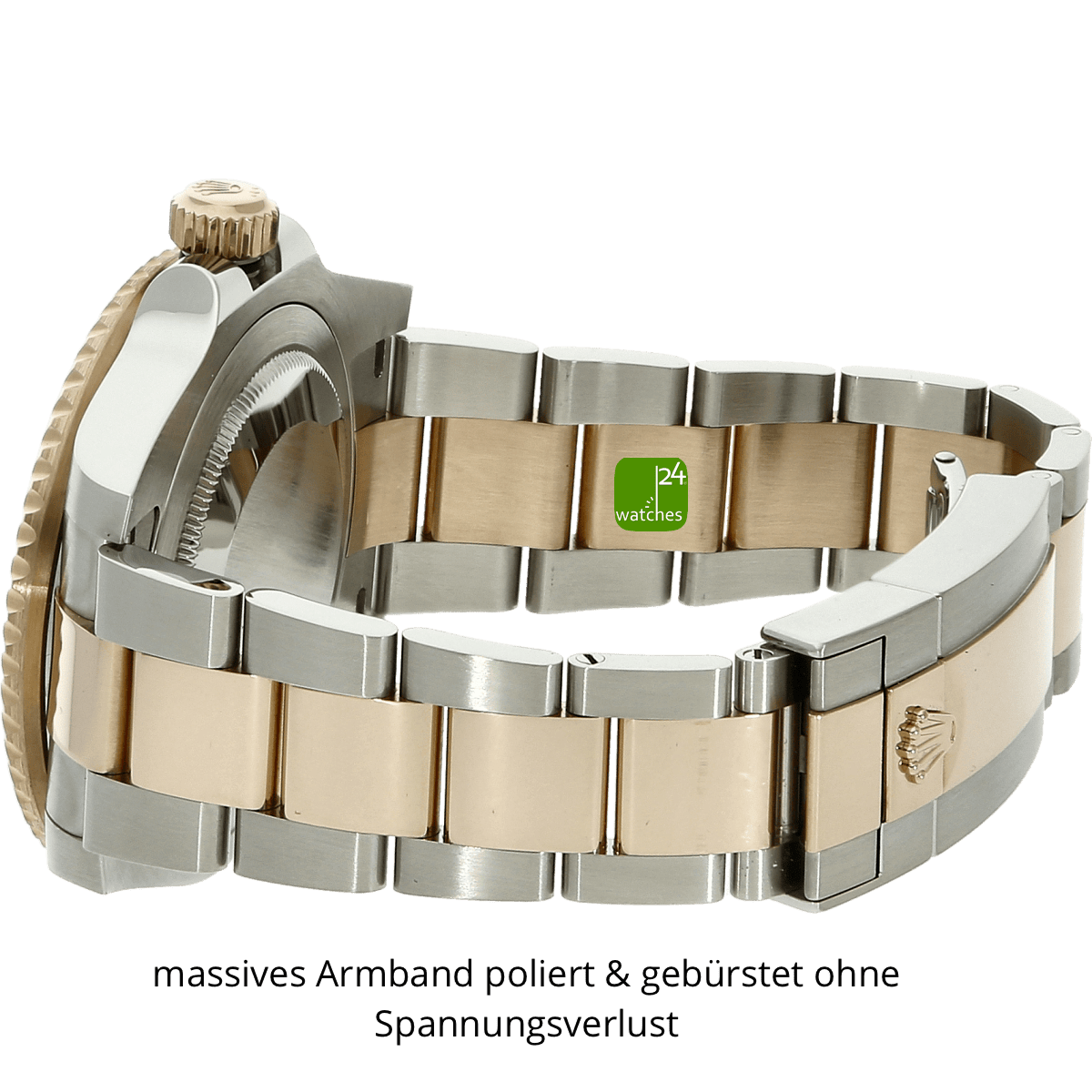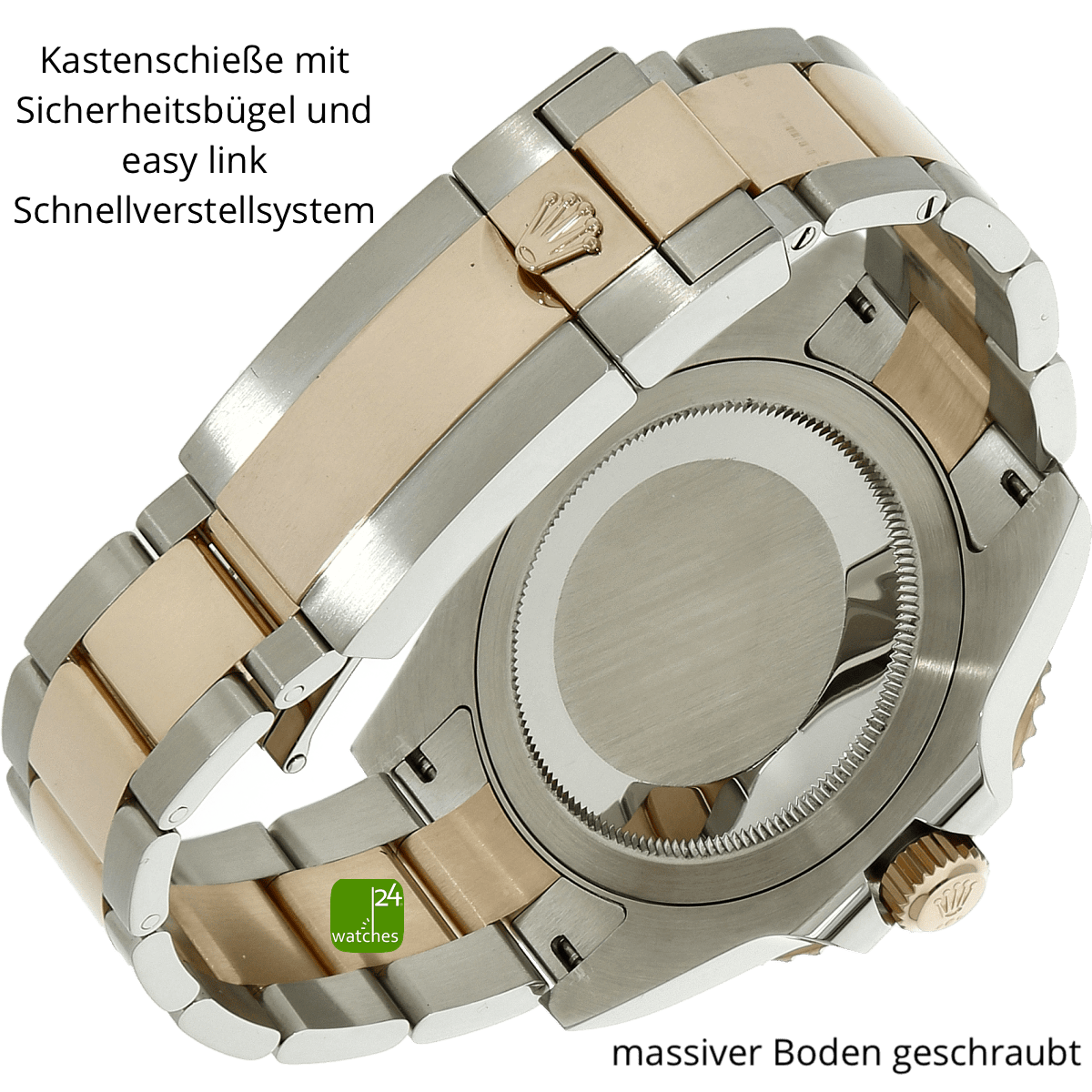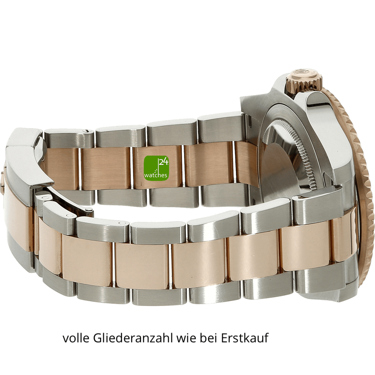 original Bracelet Rolex Oyster en acier inoxydable et or rose 18 ct / 0,750 poli et brossé | longueur de livraison d'origine avec 5 éléments de charnière vissés | original Fermoir box Rolex en acier inoxydable et or rose, poli et brossé, avec clip de sécurité et mécanisme de réglage rapide