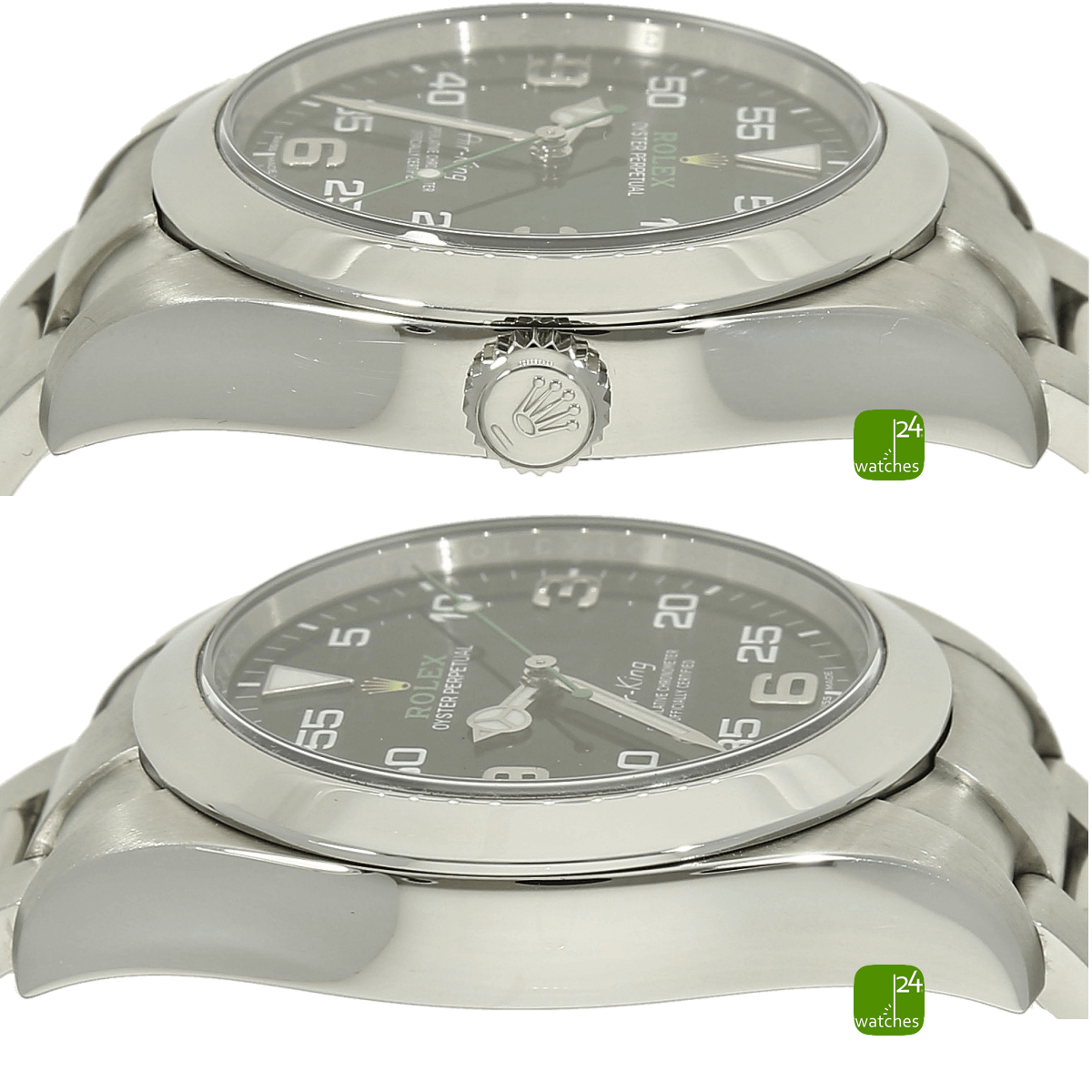 Die Fälschungen werden immer professioneller, die man nicht sofort erkennt. Hier ist ein Blick ins Innere der Uhr unerlässlich. Wir arbeiten mit versierten Uhrmachermeistern zusammen, die jede Uhr einer Echtheitsprüfung unterziehen.