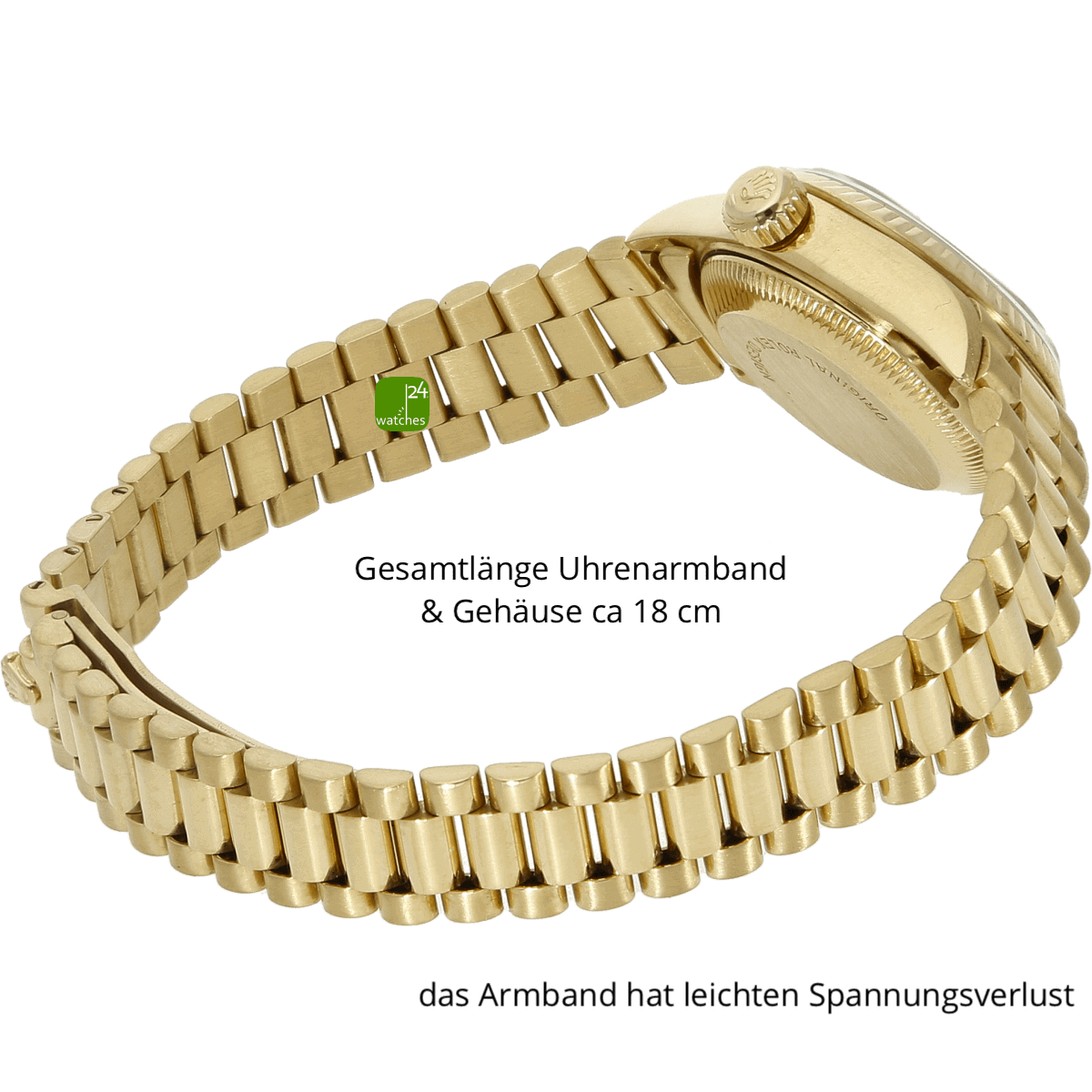 Bracelet Rolex President original en or 18 ct / 0,750 ul | Fermoir Rolex original en or jaune invisible | Longueur totale du bracelet et du boîtier de la montre environ. 18 cm | le bracelet a peu de perte de tension