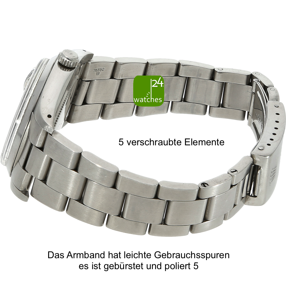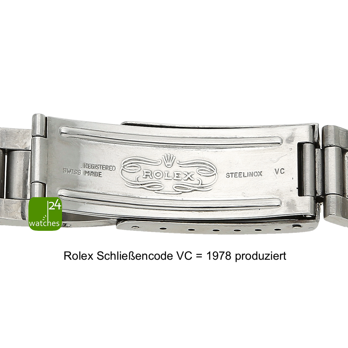 Bracelet Rolex Oyster d'origine en acier inoxydable brossé | Bracelet n° 78350 | Attache de bracelet 557 / boucle déployante Rolex d'origine avec le code VC de 1978 || Longueur totale environ 18,5 cm le bracelet a peu de perte de tension