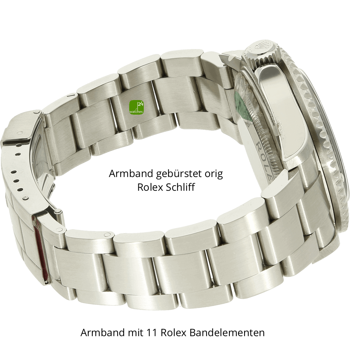 Bracelet Rolex Oyster d'origine brossé, poli sur les côtés | boîte Rolex originale boucle déployante avec barre de sécurité et rallonge de plongée
