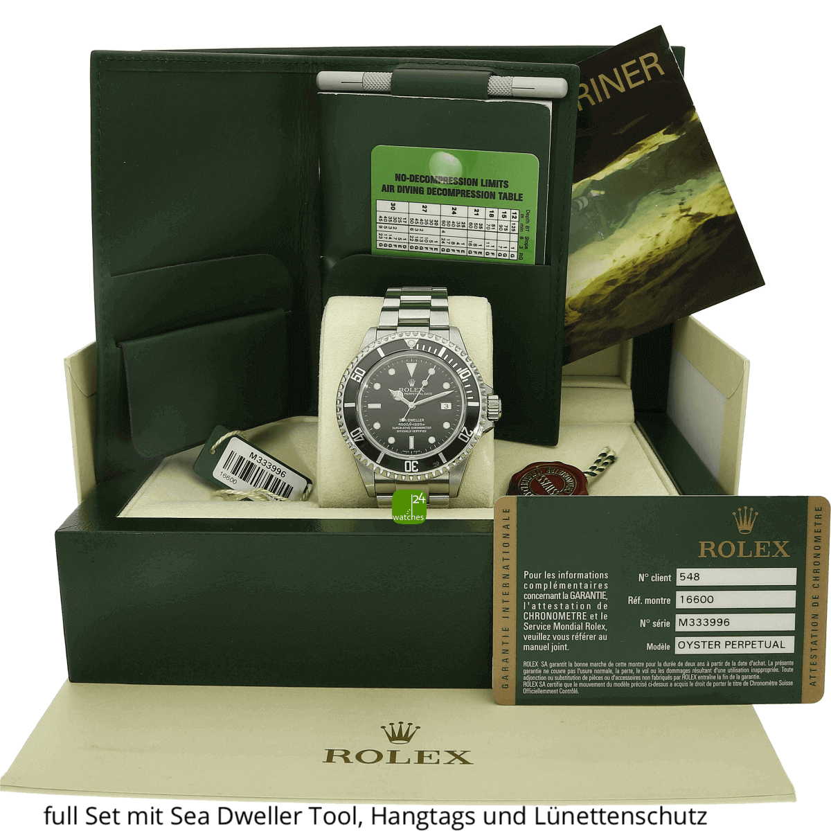Hat die Uhr keine Original-Papiere, bescheinigen wir die Echtheit in Form eines Zertifikates. Die Referenz-/ Serien-Nummer wird von uns dokumentiert in der personalisierten watches24-Rechnung.