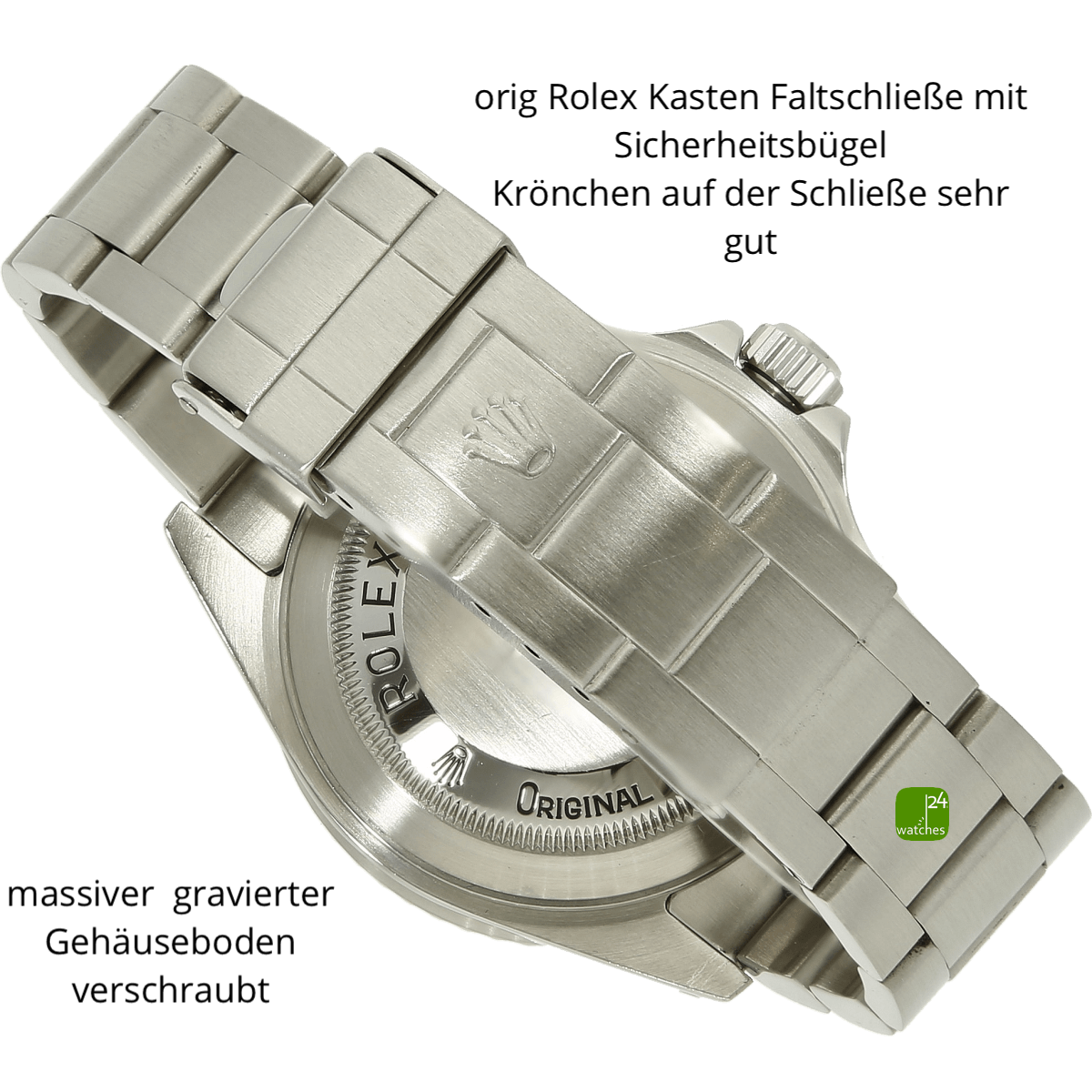 Hat die Uhr keine Original-Papiere, bescheinigen wir die Echtheit in Form eines Zertifikates. Die Referenz-/ Serien-Nummer wird von uns dokumentiert in der personalisierten watches24-Rechnung.