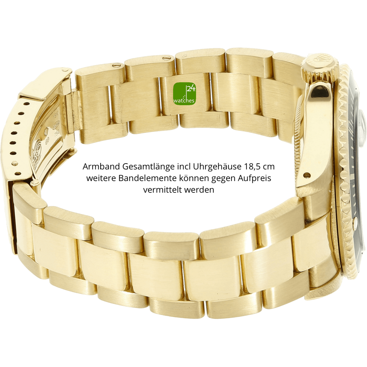 Bracelet original Rolex Oyster en or jaune 18 ct / 0,750 fermoir Rolex Flip Look original avec extension de plongée en or | Longueur totale environ 18,5 cm | le bracelet n'a aucune perte de tension | Des éléments de bande supplémentaires peuvent être utilisés contre