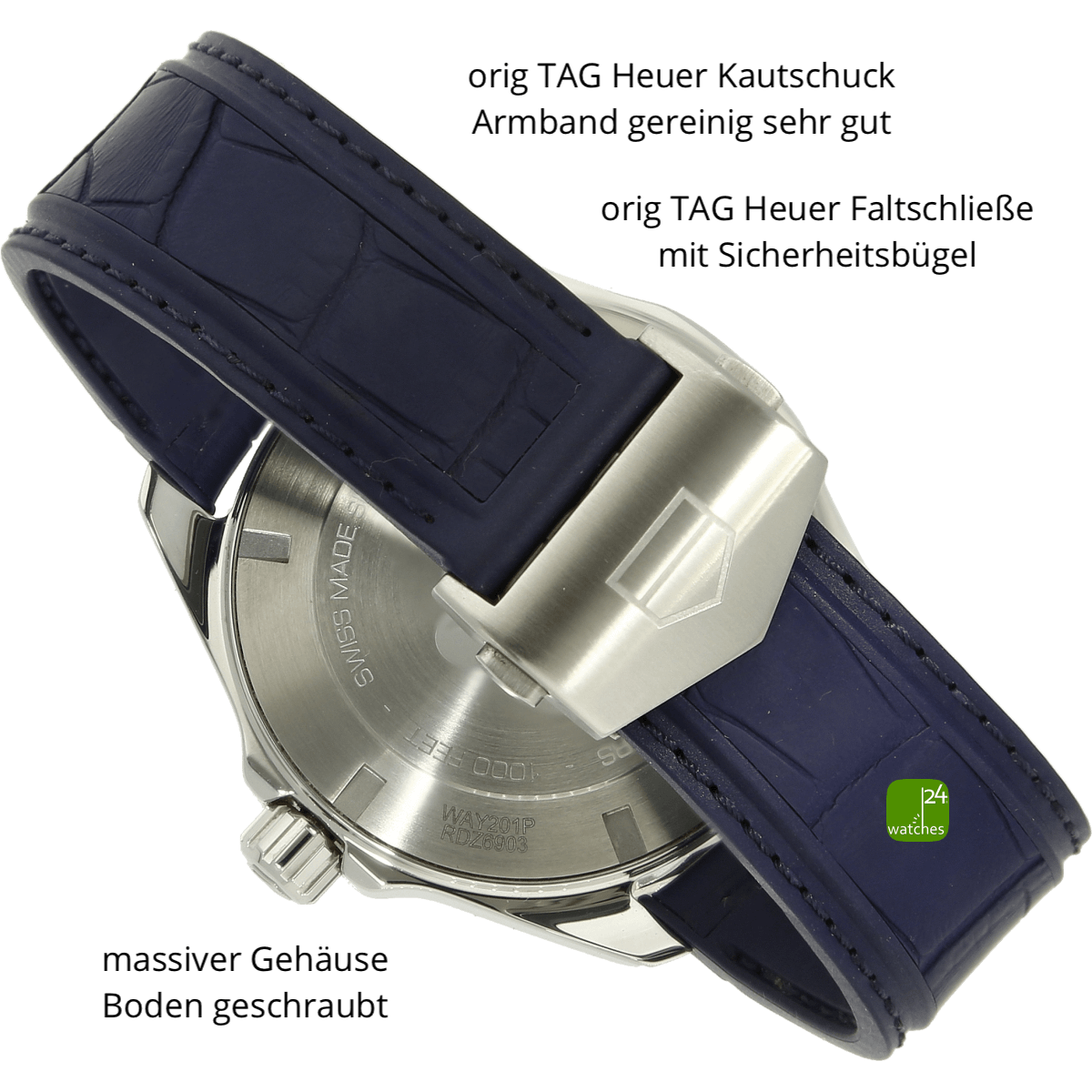 Bracelet original TAG Heuer en caoutchouc aseptisé avec impression en cuir d'alligator.