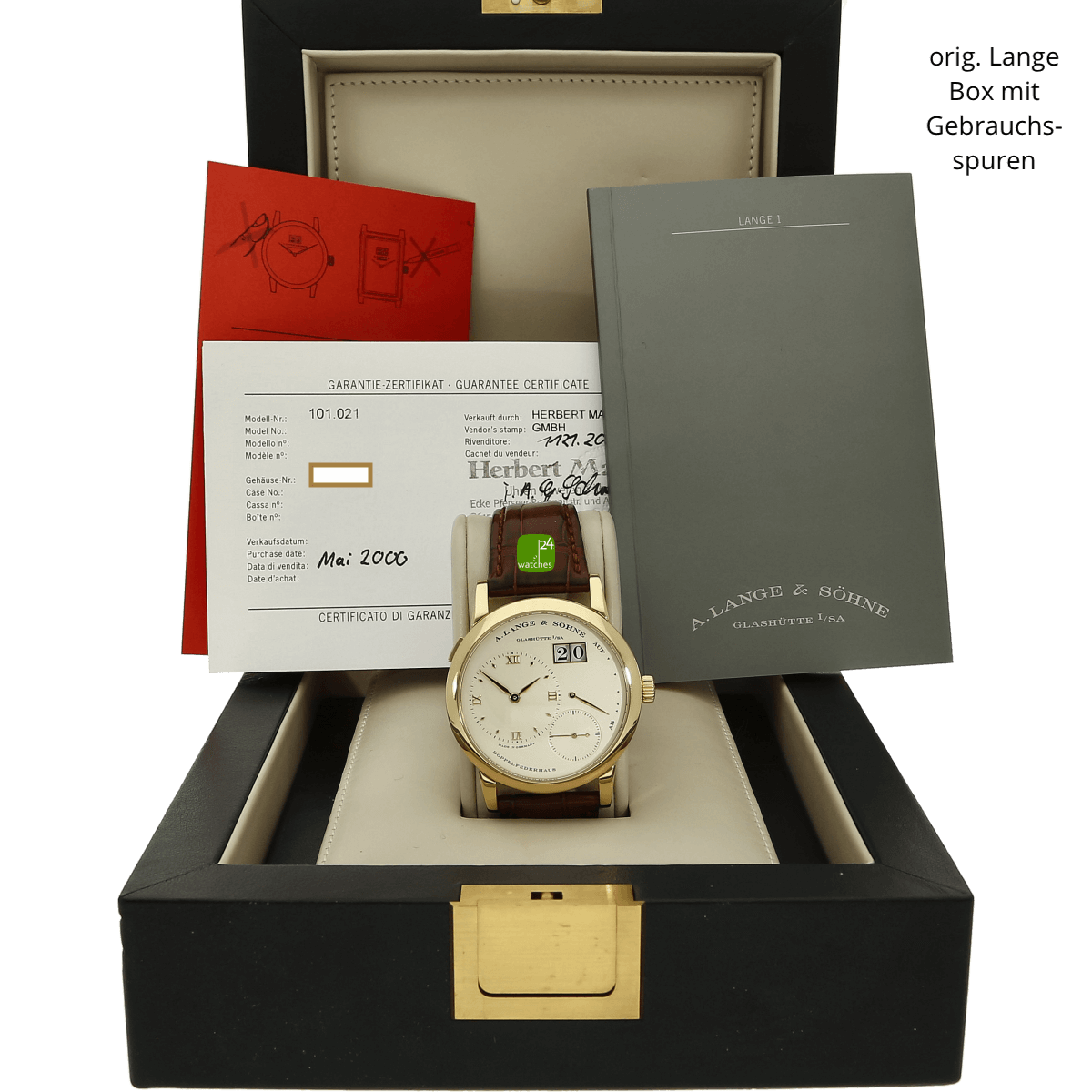 Hat die Uhr keine Original-Papiere, bescheinigen wir die Echtheit in Form eines Zertifikates. Die Referenz-/ Serien-Nummer wird von uns dokumentiert in der personalisierten watches24-Rechnung.