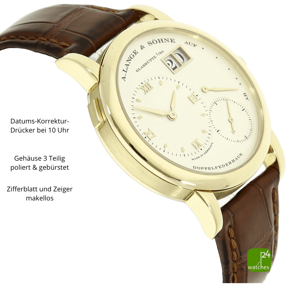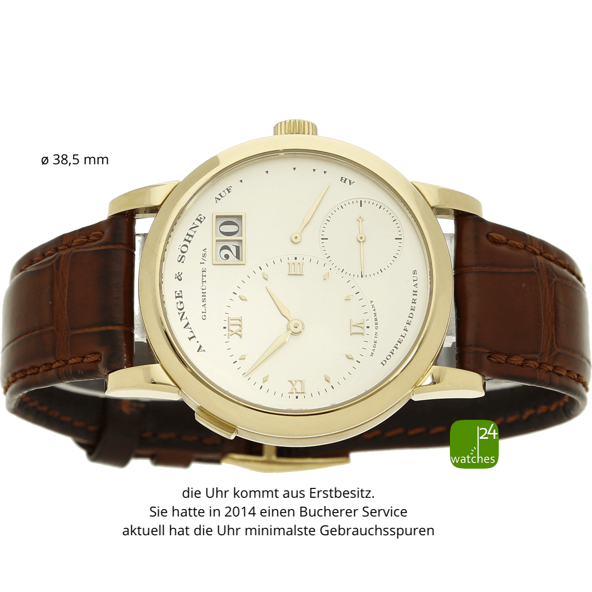 Beim Erstkauf erhalten Sie ihre Luxusuhr mit dem Original Lederarmband des Herstellers. Lederarmbänder unterliegen einem Verschleiß in der
