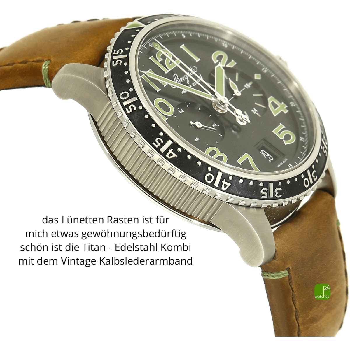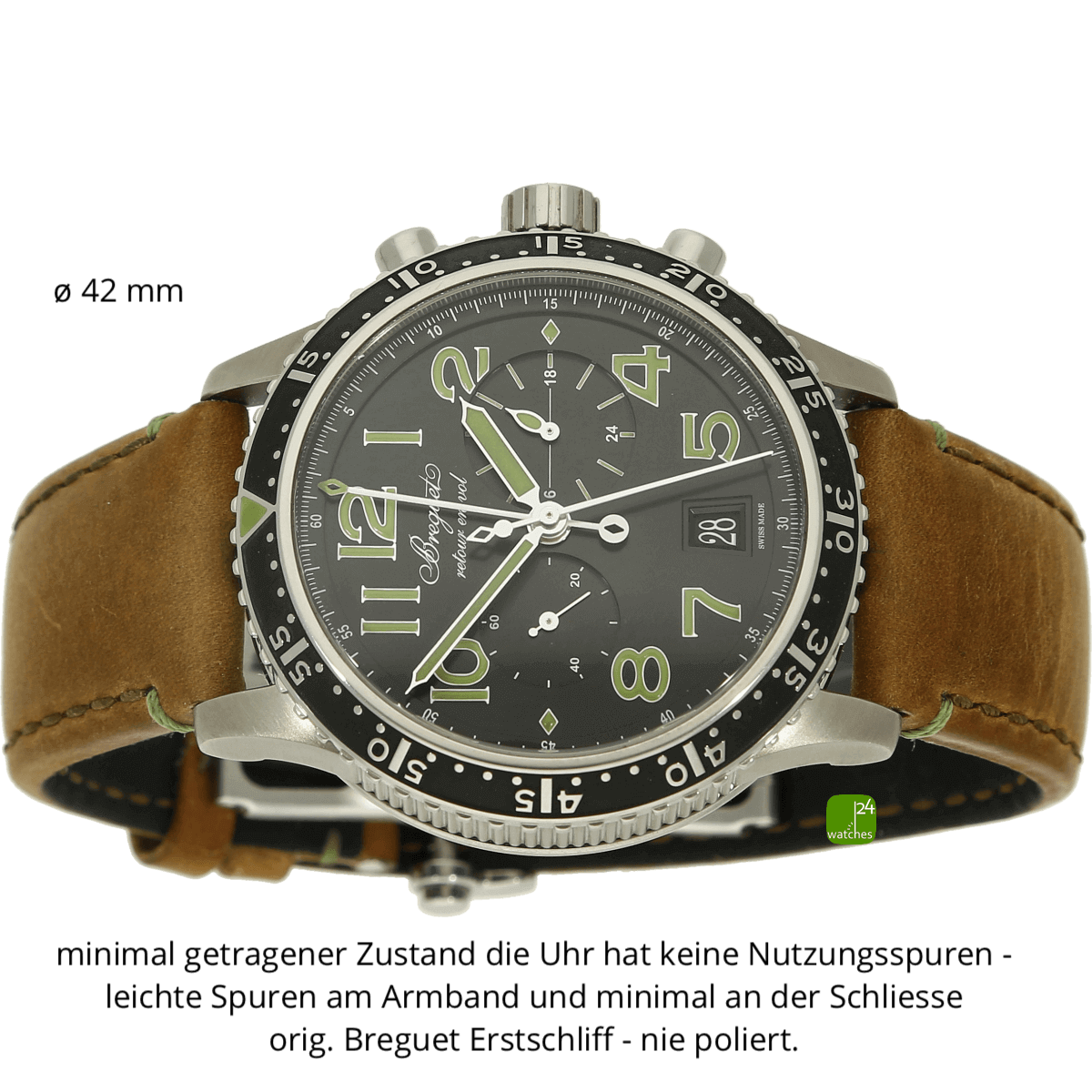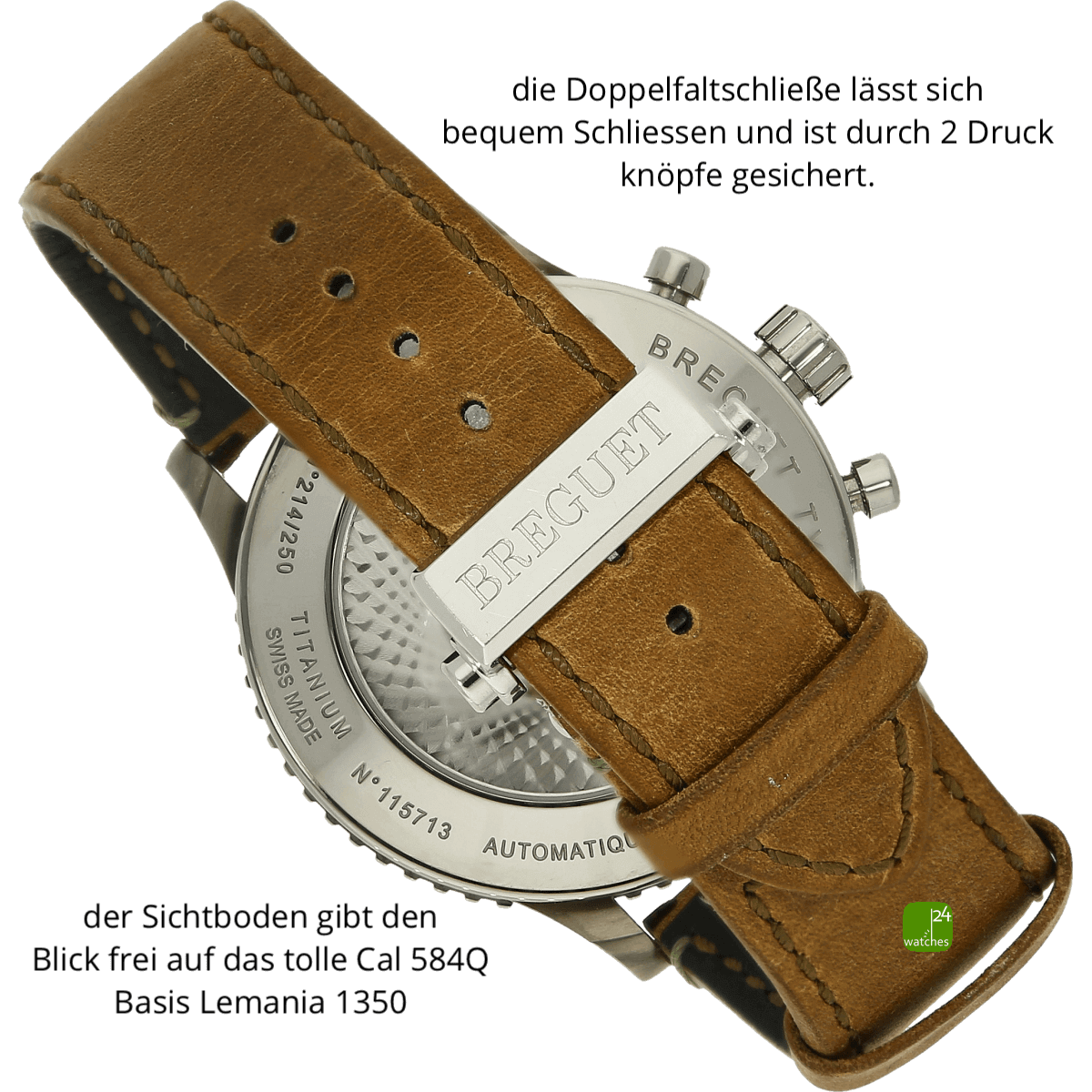 orig Breguet Kalbsleder Leder Armband minimalst getrageb | orig Breguet Faltschließe in Edelstahl und Titan