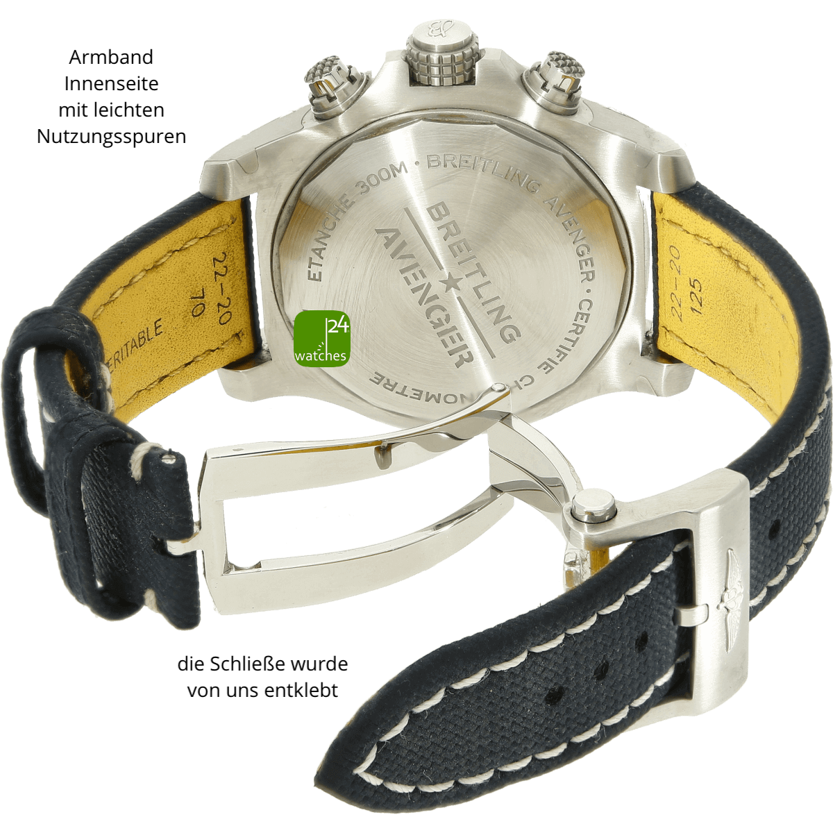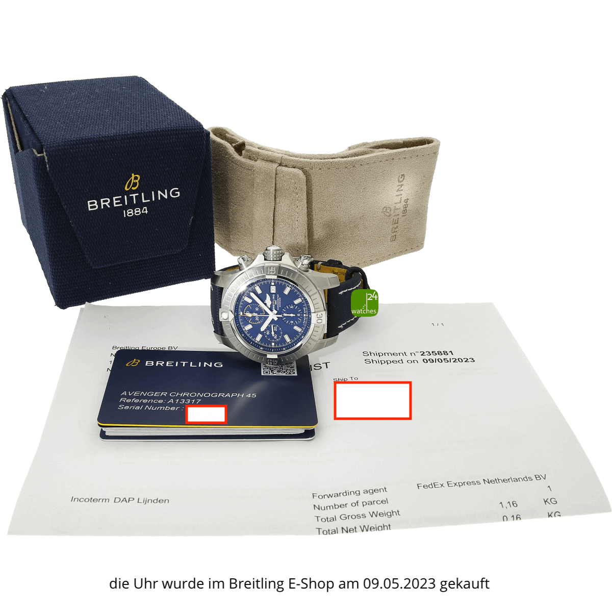 Hat die Uhr keine Original-Papiere, bescheinigen wir die Echtheit in Form eines Zertifikates. Die Referenz-/ Serien-Nummer wird von uns dokumentiert in der personalisierten watches24-Rechnung.