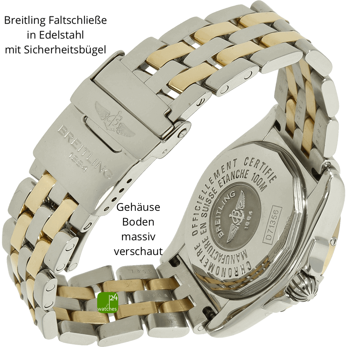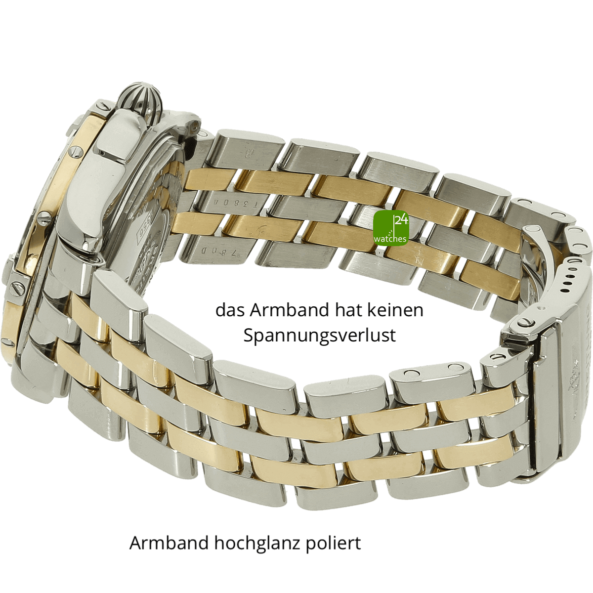 Original Breitling Pilot Armband in Edelstahl und 18 ct Gold poliert | orig Breitling Edelstahl Faltschieße mit Sicherheitsbügel poliert| Gesamtlänge Uhrgehäuse incl Uhrenarmband ca 17,5 cm | das Armband hat keine Gebrauchsspuren