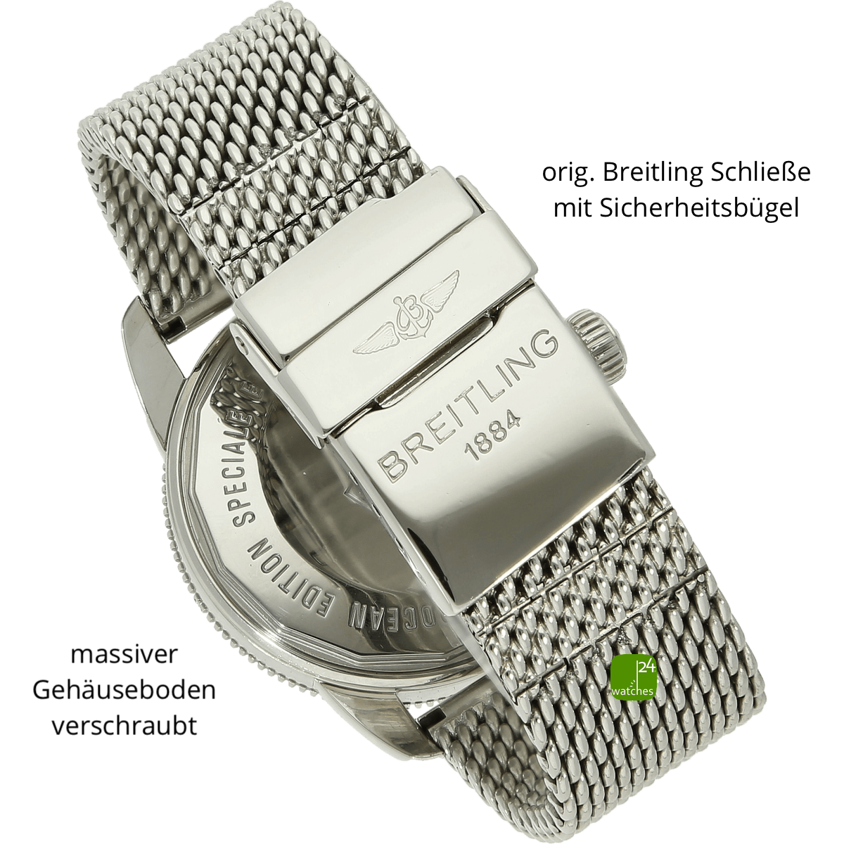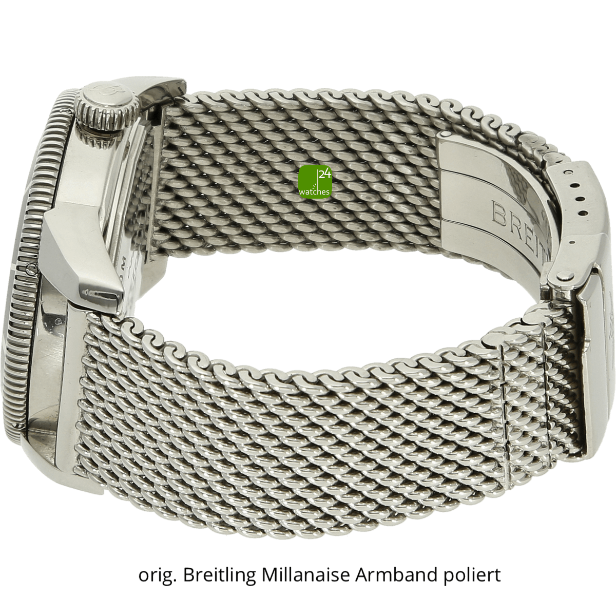 orig Breitling Milanese Armband in Edelstahl | Orig Breitling Kasten Schließe mit Sicherheitsbügel | Gesamtlänge 17 cm incl Uhrgehäuse