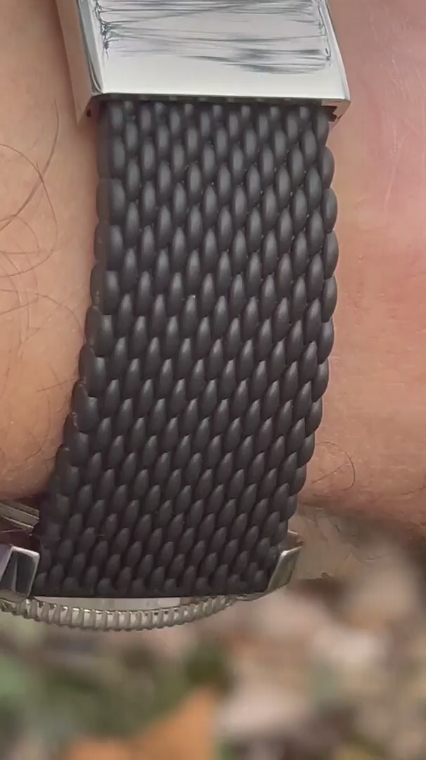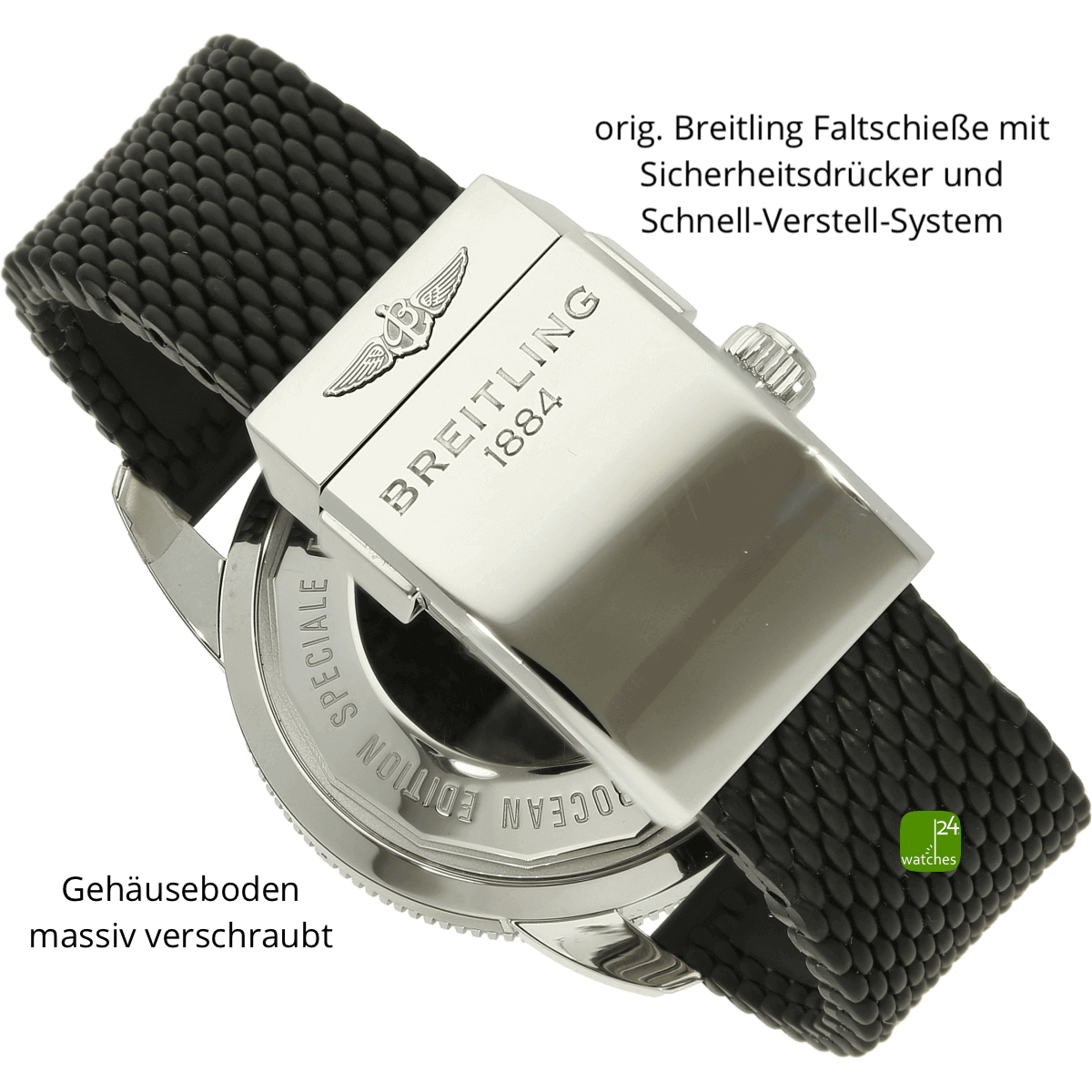 orig Breitling Kautschuk Armband im Millanaise stiel | orig Breitling Kastenschließe poliert und mit Sicherheitsdrückern - mit Schnell-Verstell-System | Gesamtlänge Uhrenarmband und Uhrgehäuse ca 20 cm | orig Auslieferungslänge