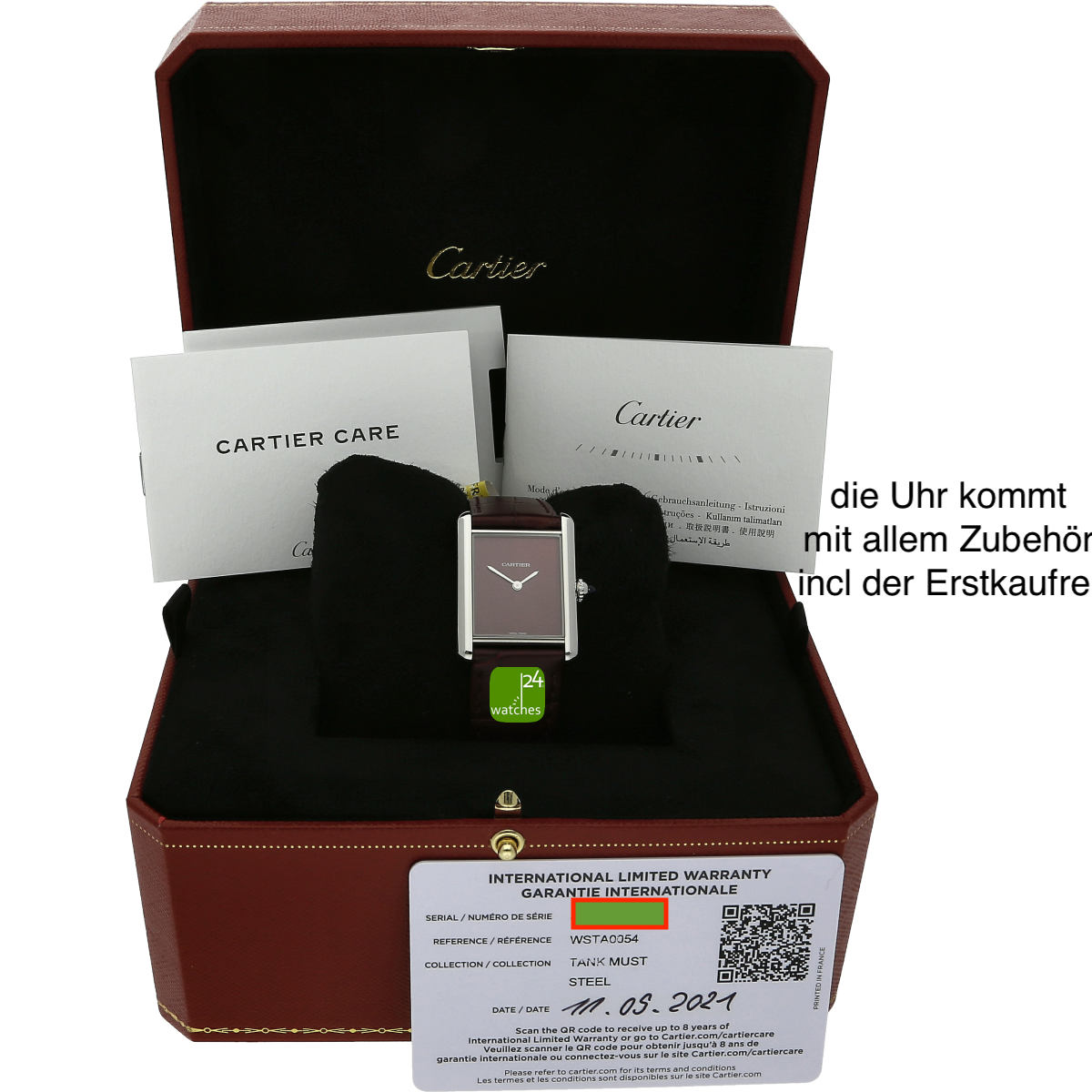 Produktdetails CARTIER Tank Stahl Burgund limitiert - NEU ungetragen