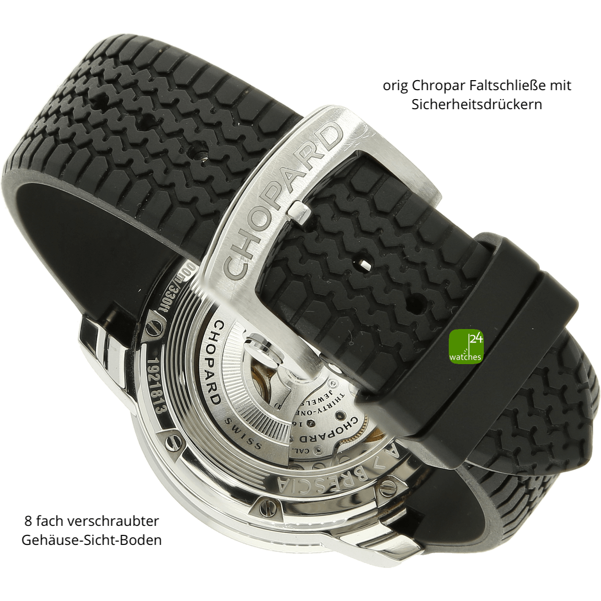 orig Chopard Kautschuk Armband im Reifendesign in sehr guten Zustand ohne Nutzungsspuren und keimfrei gereinigt | orig. Chopard Edelstahl Doppelfaltschließe mit Sicherheitsdrückern mattiert