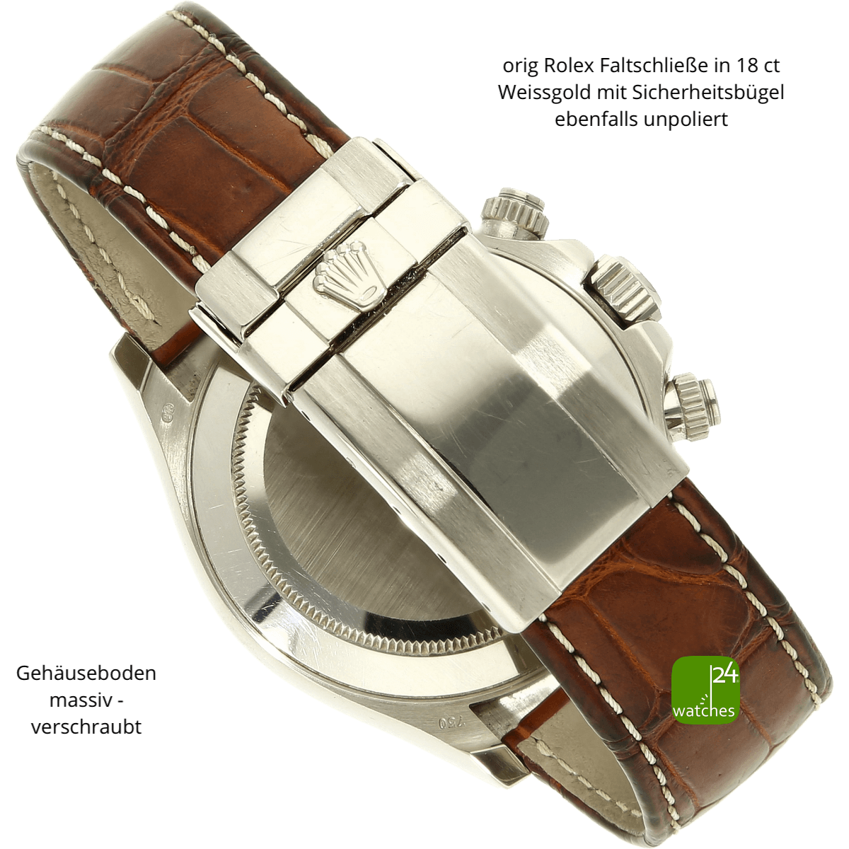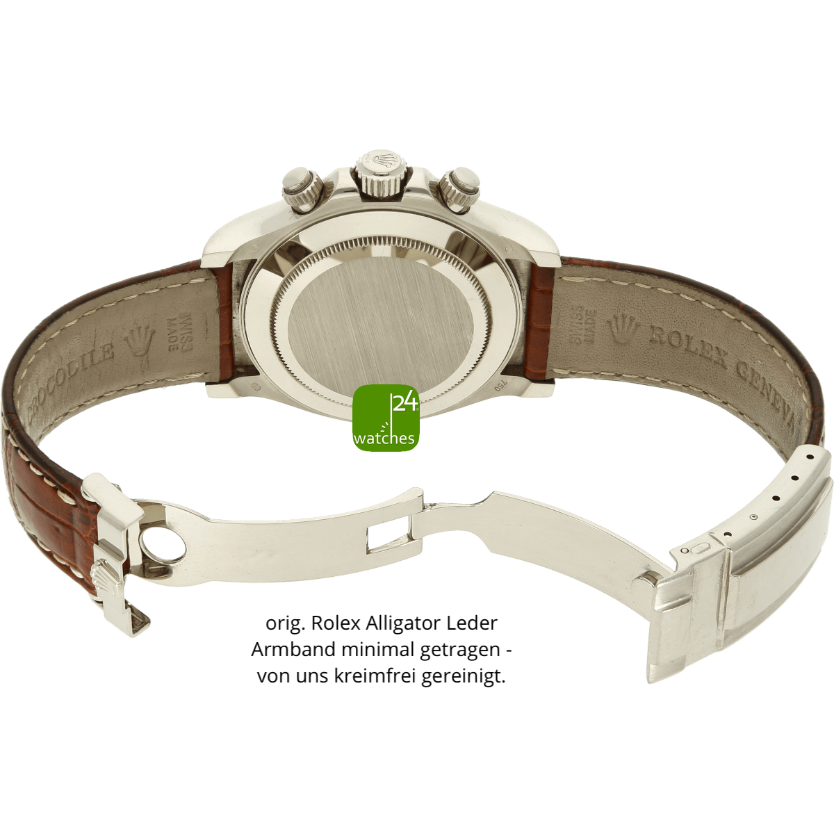 Orig Rolex Alligator Lederarmband minimal getragen | orig Rolex Faltschließe in 18 ct Weissgold mit Sicherheitsbügel
