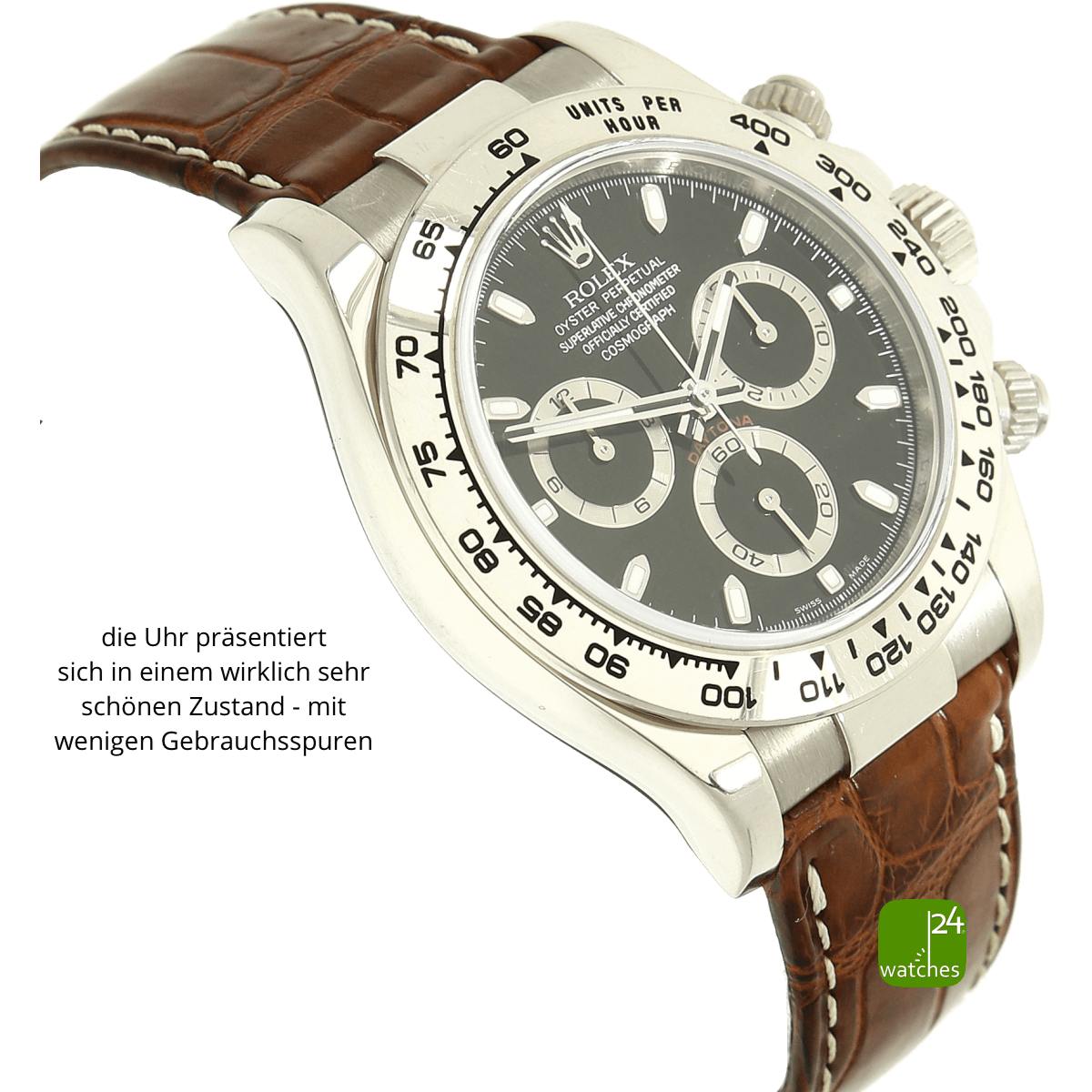 Hat die Uhr keine Original-Papiere, bescheinigen wir die Echtheit in Form eines Zertifikates. Die Referenz-/ Serien-Nummer wird von uns dokumentiert in der personalisierten watches24-Rechnung.