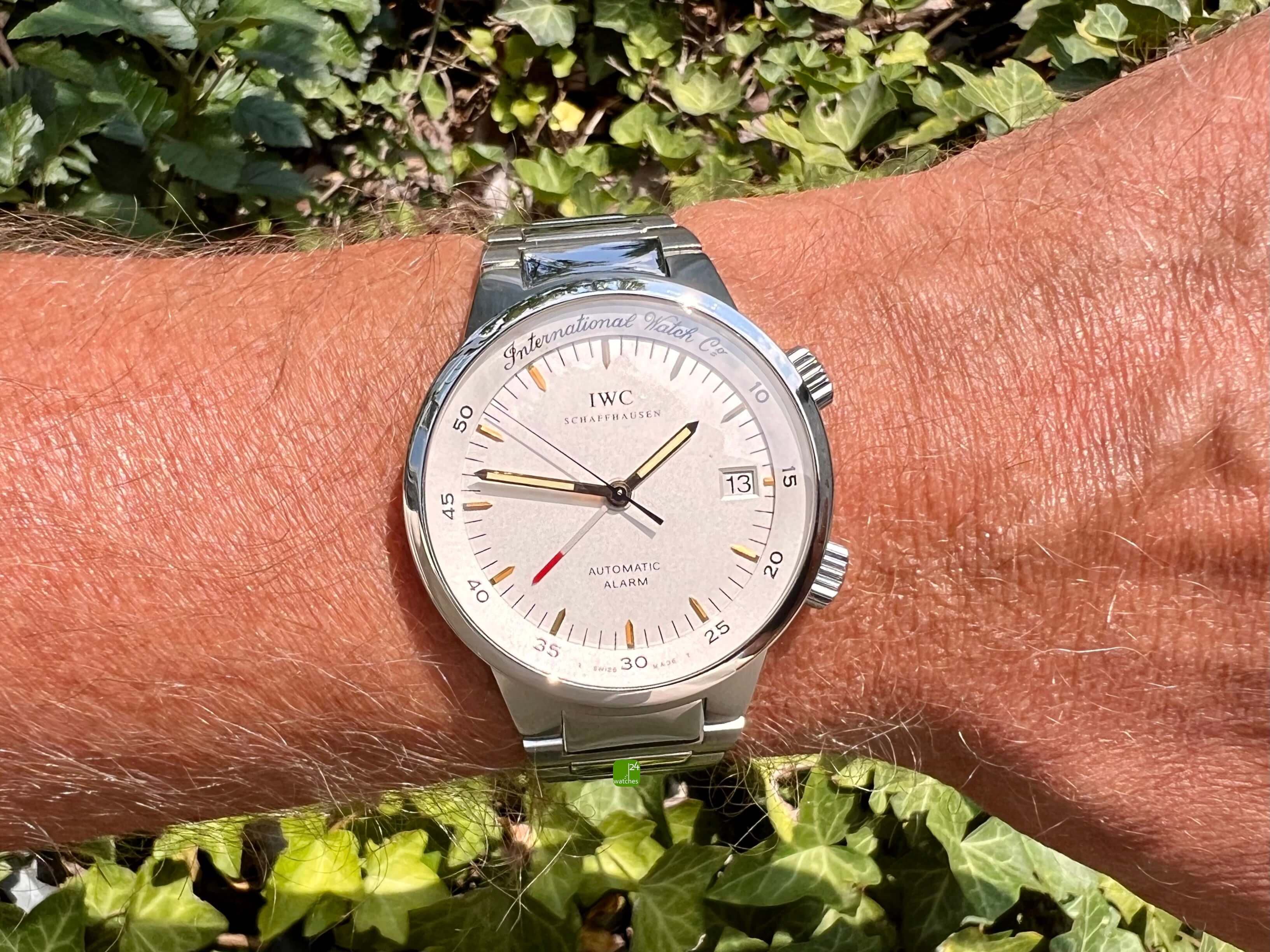 Automatik | IWC Cal 917 | Basis Jaeger 916 | 22 Steine | 28.800 A/h | 44 Stunden Gangreserve | Anzeige von Stunden, Minuten, zentralen Sekunden | digitales Monatsdatum bei 3 Uhr | Alarmfunktion