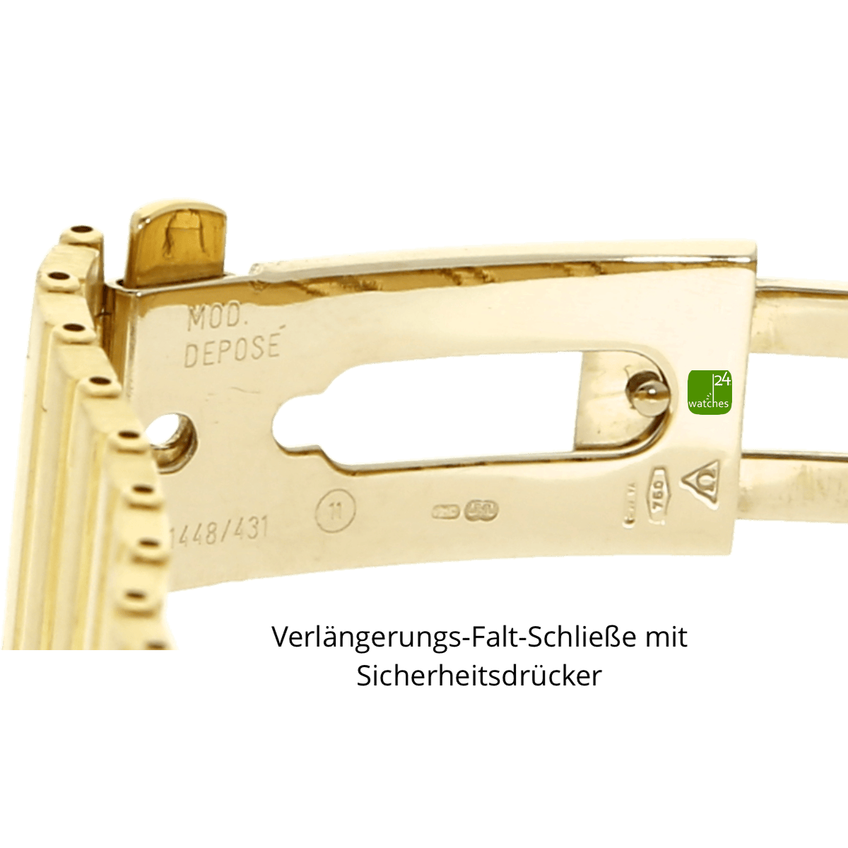 orig Omega Gold Armband 18 ct | 0,750 gebürstet und poliert | unsichtbare Faltschließe mit Sicherheitsdrücker und Omega Logo | Gesamtlänge Uhrgehäuse und Armband ca 19,0 cm