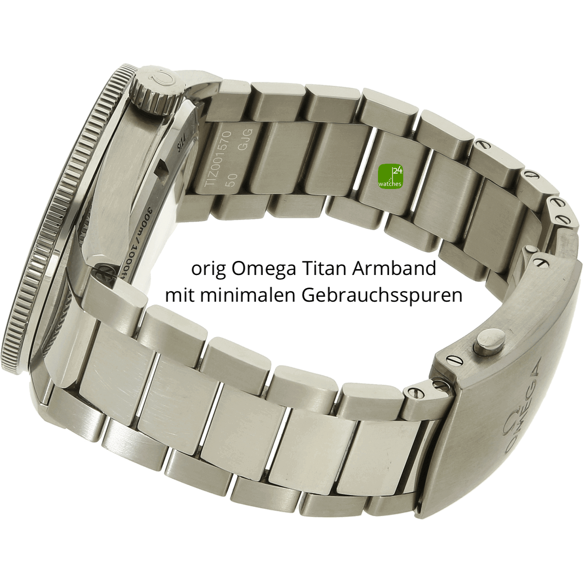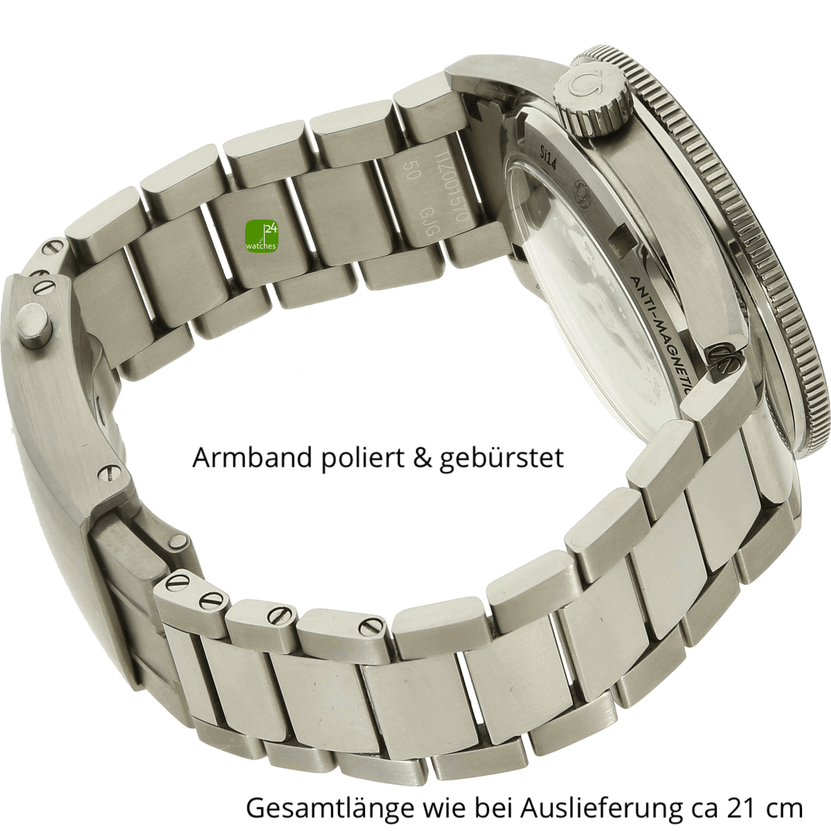 Original Omega Titan Armband mattiert und poliert | orig Omega Falt Kasten Schließe mit Sicherheitsrücker und Schnellverstellsystem | Gesamtlänge Uhrengehäuse und Armband 21 cm