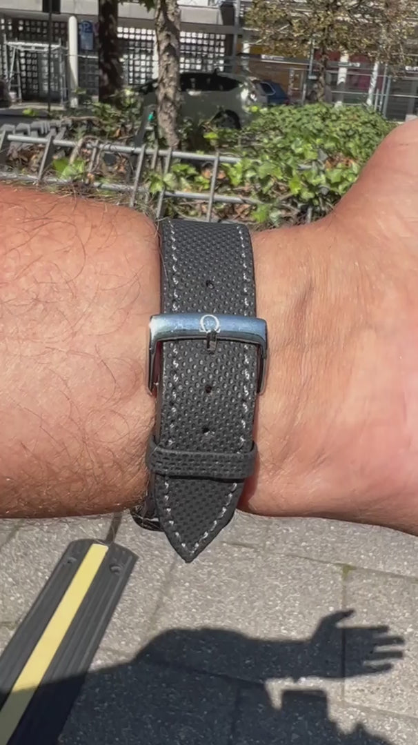 neutrales Textillederarmband Leder abgefüttert | orig Omega Dorn-Schließe in Edelstahl poliert