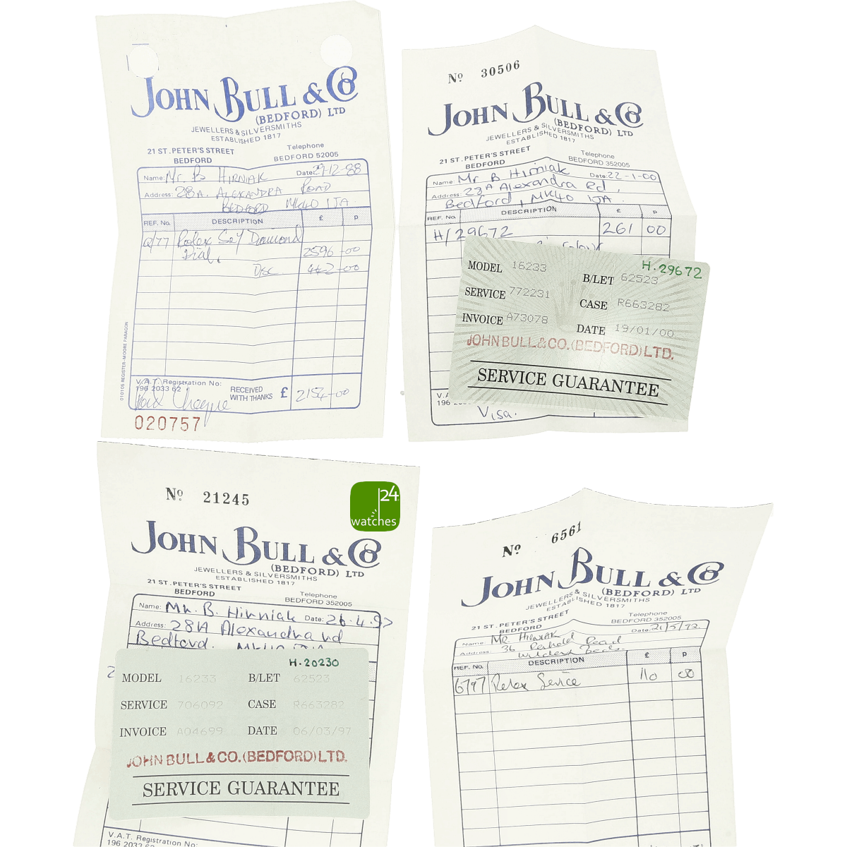 auf Wunsch eine Kopie der Rechnung des Uhrmachers, der die Uhr überholt hat.