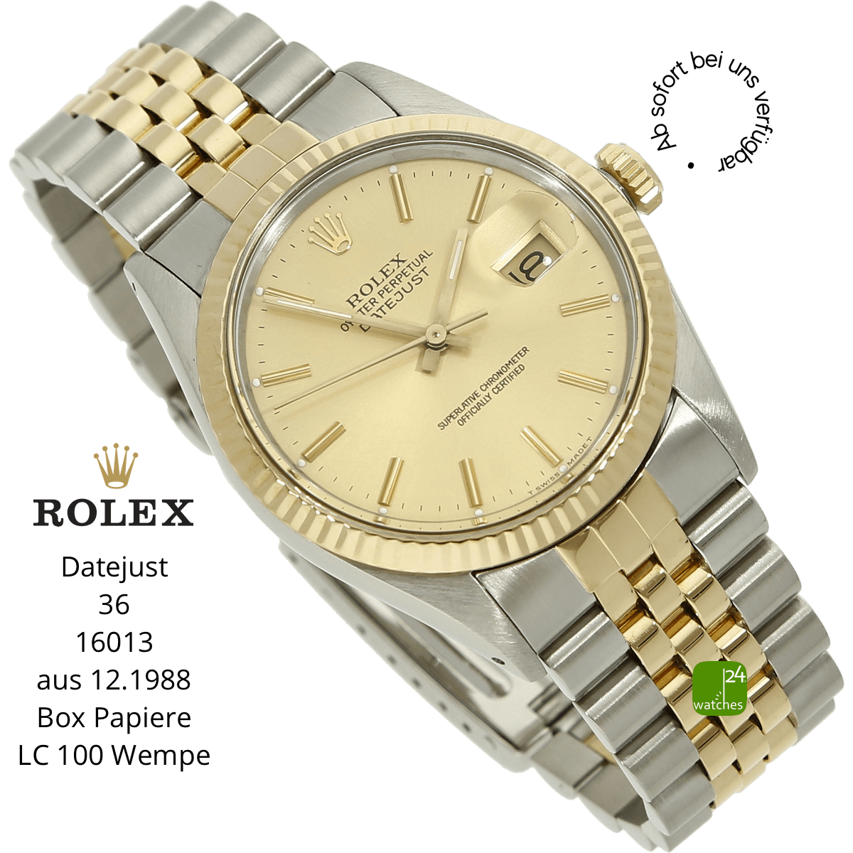 Produktdetails Rolex Datejust Stahl/Gold 36 Box Papiere 1988
