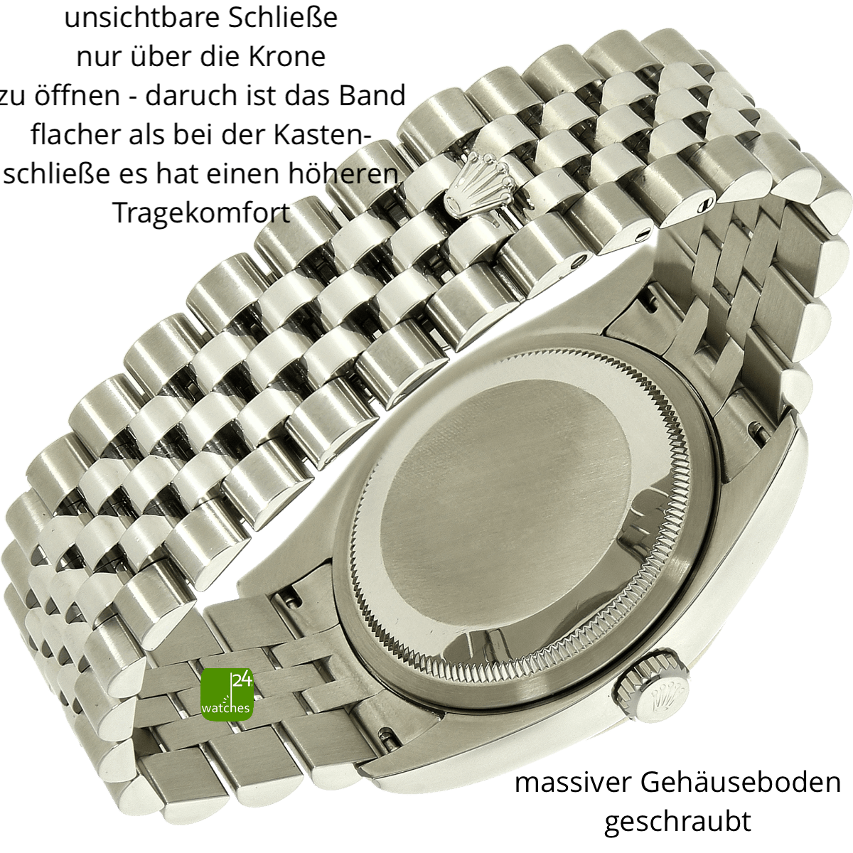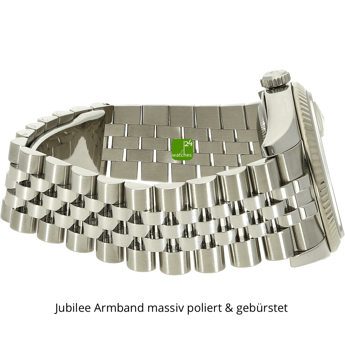 Jubilee Armband in Edelstahl poliert und gebürstet | unsichtbare Faltschließe am Rolexkrone | Gesamtlänge Uhrenarmband und Uhrgehäuse ca 18,5 cm | Das Armband hat minimalen Spannungsverlust!