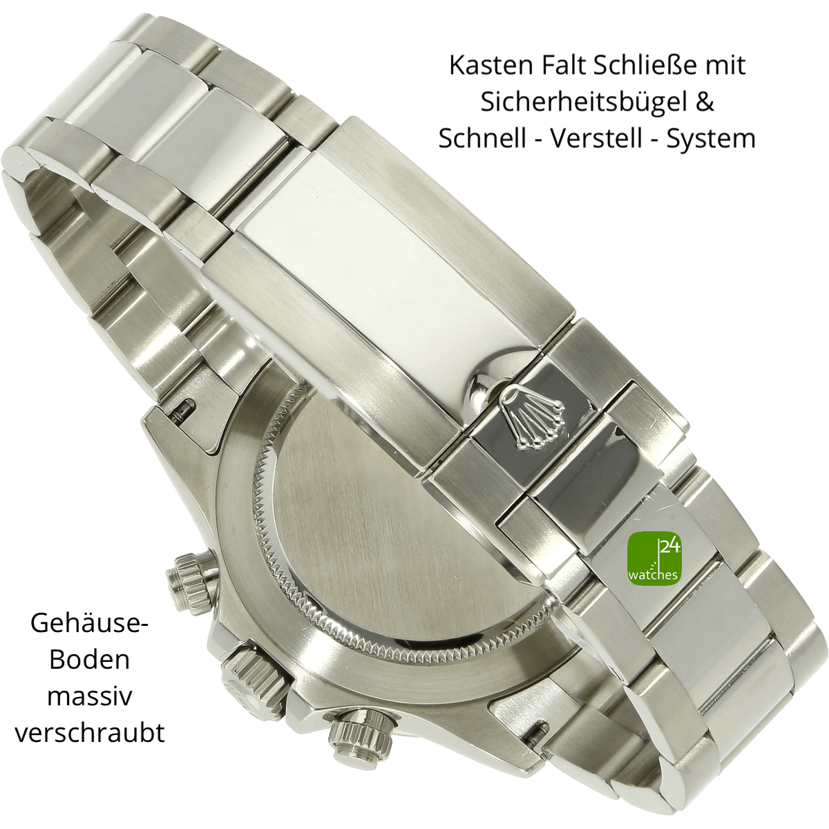 Original Rolex Oyster Armband poliert & gebürstet | Rolex Kastenfaltschließe mit Sicherheitsbügel | Easylink zur Band Schnell Verstellung um 5 mm | Insgesamt 11 Bandelemente = Auslieferungslänge