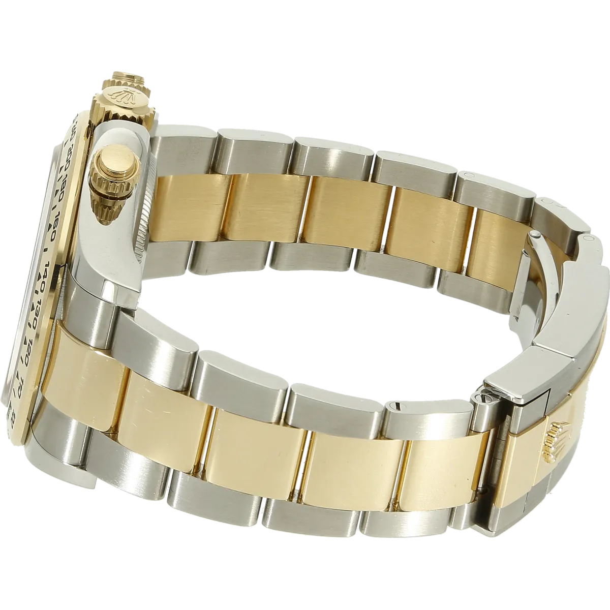 Gehäuse Boden massiv geschraubt | Saphirglas ohne Beschädigung | orig Rolex Krone verschraubt | Lünette massiv 18 ct Gold mit Tachymeter Gravuren | lt Hersteller bis 100 m wasserdicht - aktuell getestet