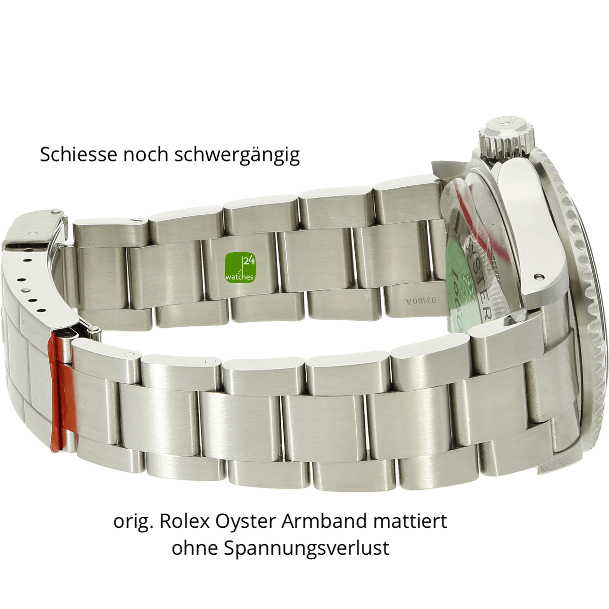 orig Rolex Oyster Armband gebürstet seitlich poliert | orig. Rolex Kasten Faltschließe mit Sicherheitsbügel und Tauchverlängerung noch mit roten Schutzkleber zum Armband