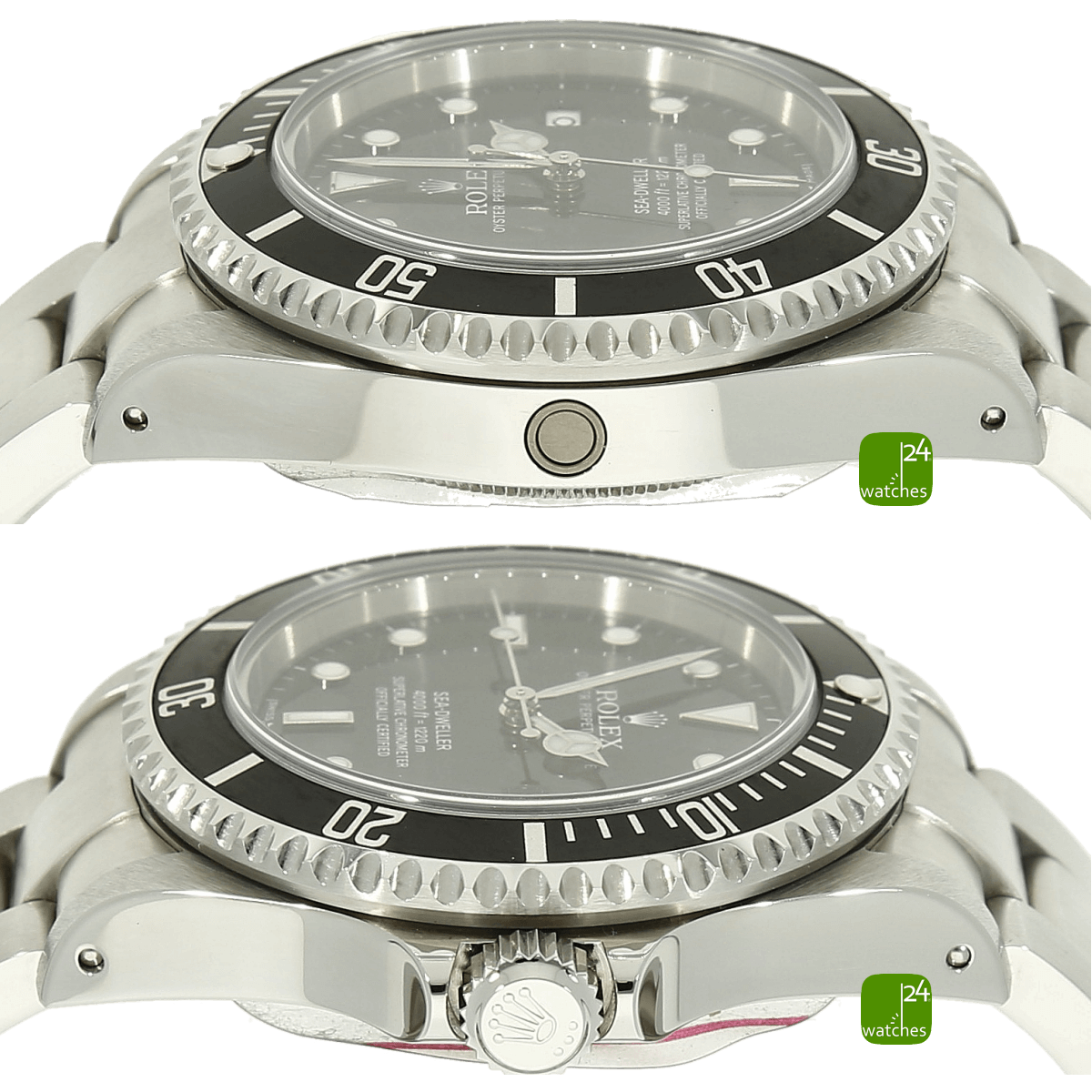 Edelstahl poliert und gebürstet | Gehäusedurchmesser 40 mm ohne Krone | mit Krone 44 mm | von Bandanstoss zu Bandanstoss 47,5 mm | Gehäusehöhe 14 mm | massiver geschraubter Gehäuseboden mit Hersteller Gravuren noch Hersteller verklebt | Saphirglas unbeschädigt | orig Rolex Triplook Krone verschraubt | Heliumauslassventil bei neun Uhr | Lünette einseitig drehbar, 60 fach rastend mit Alu Einlage bedruckt | Bandanstoss 20 mm | lt Hersteller 1220 m wasserdicht - aktuell getestet mehr als 10 bar dicht | Gesamtgewicht 150 Gramm